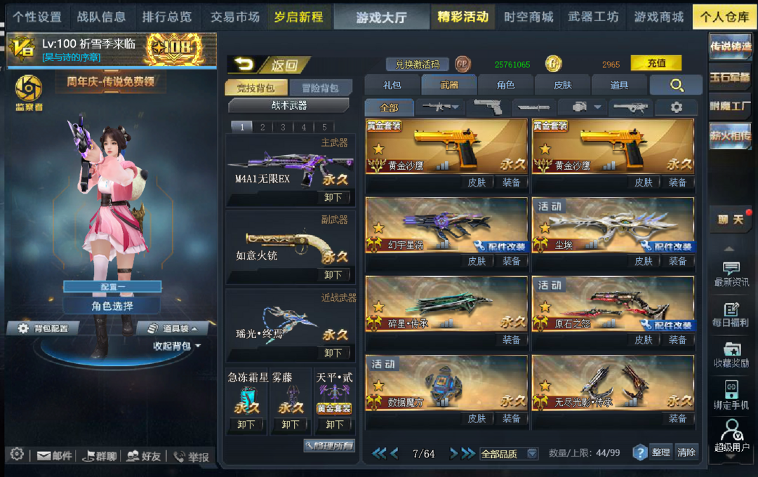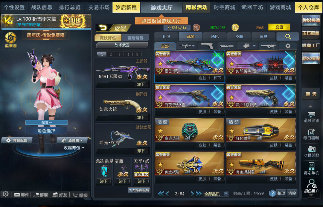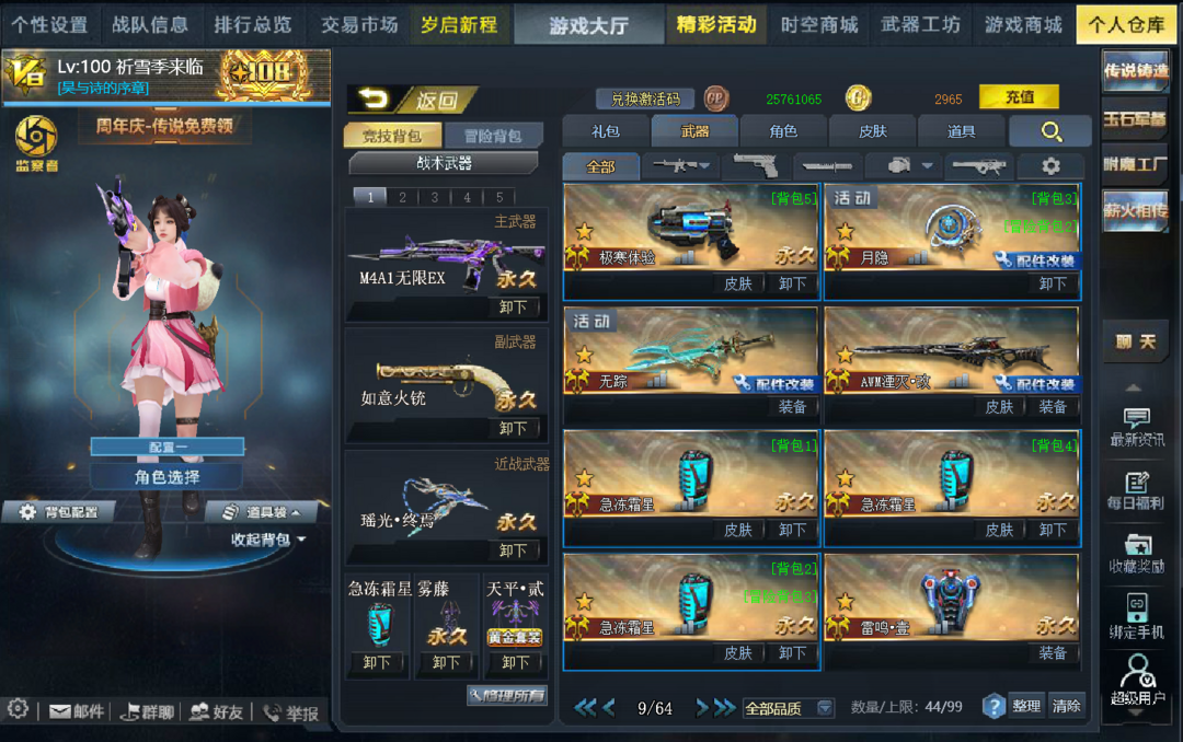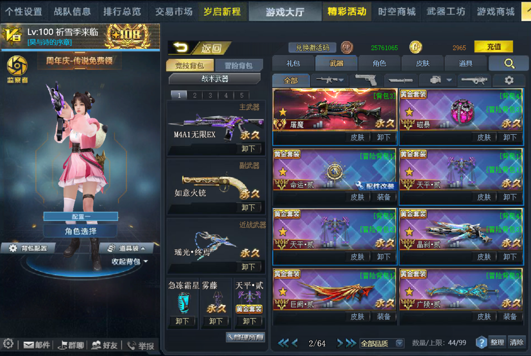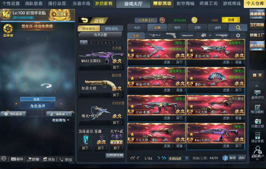 装备描述:极品v8爆破号✨ex带皮✨屠魔✨神谕✨扇子✨影魔带皮✨星珀✨原石满配✨极寒✨火铳带皮✨双v8角色✨双天平✨命运✨五套烟加闪光✨三个冰雷✨变异✨刀战也可玩✨幻峰满配✨