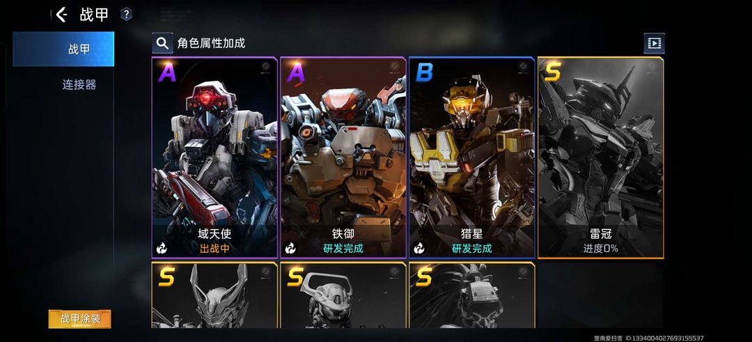 皮肤只有骇影蚀刻,啥都没,战甲也没s级,只能休闲玩玩