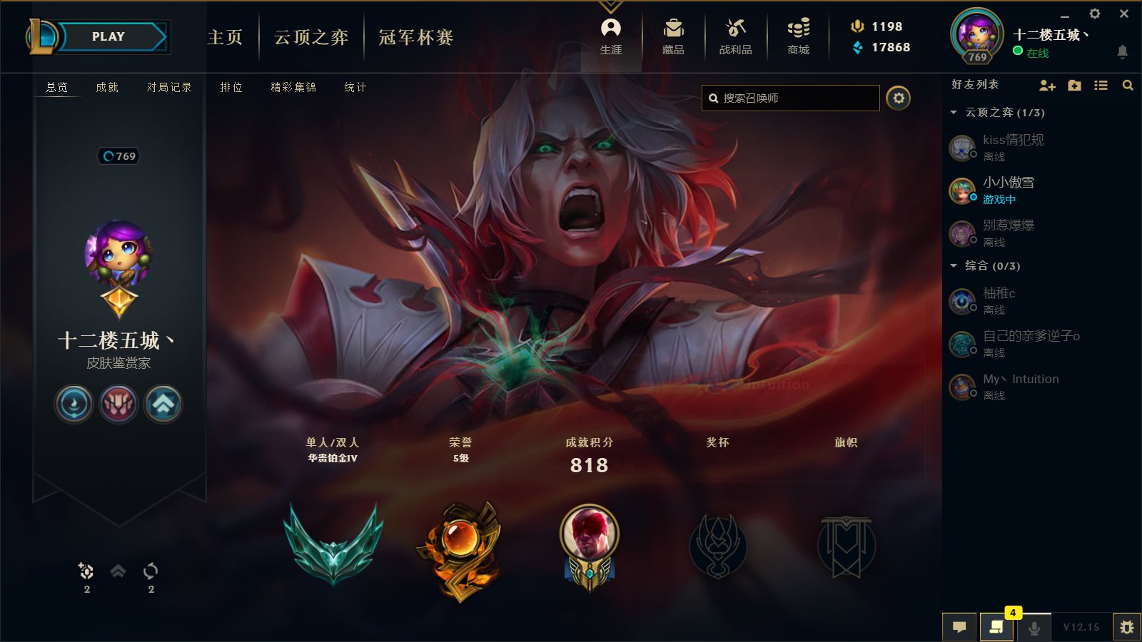段位:769级 华贵铂金Ⅳ