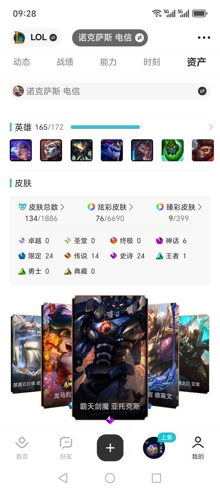 134P(不包括炫彩),玉剑劫,玉剑天使,165个英雄。单双黄金,灵活排位钻3