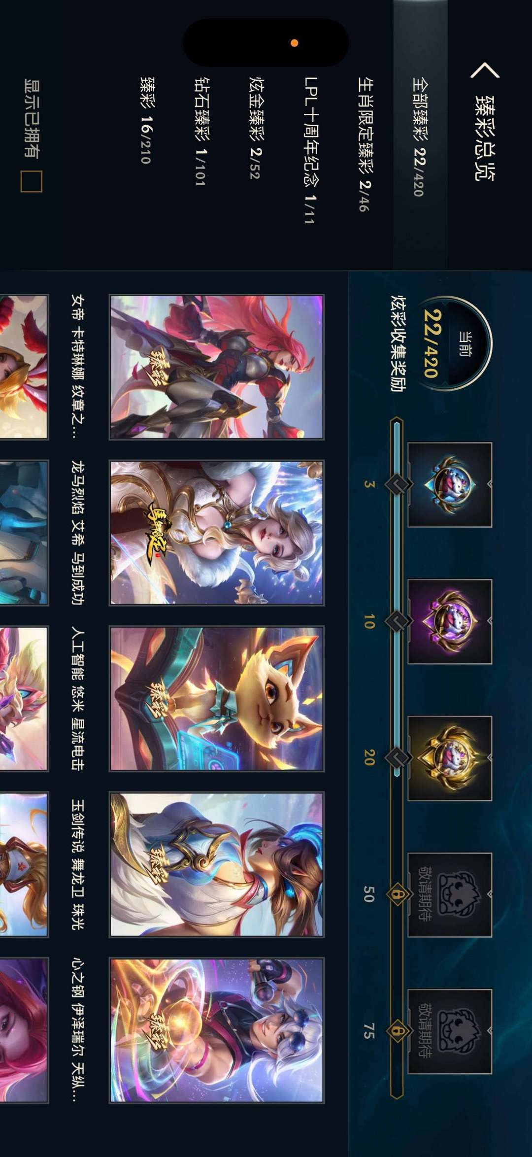 装备描述:546原皮,550炫彩,有温泉系列,金鱼枫姬阿狸,摄魂薇恩-海克斯安妮等等。至臻系列。泳池派对系列跟甜心系列,冰雪节跟星守还有情人节限定(琴女,婕拉,猫),还有银龙裁决男刀等各种限定皮肤。图片展示位不够啦,感兴趣可以点详情嗷