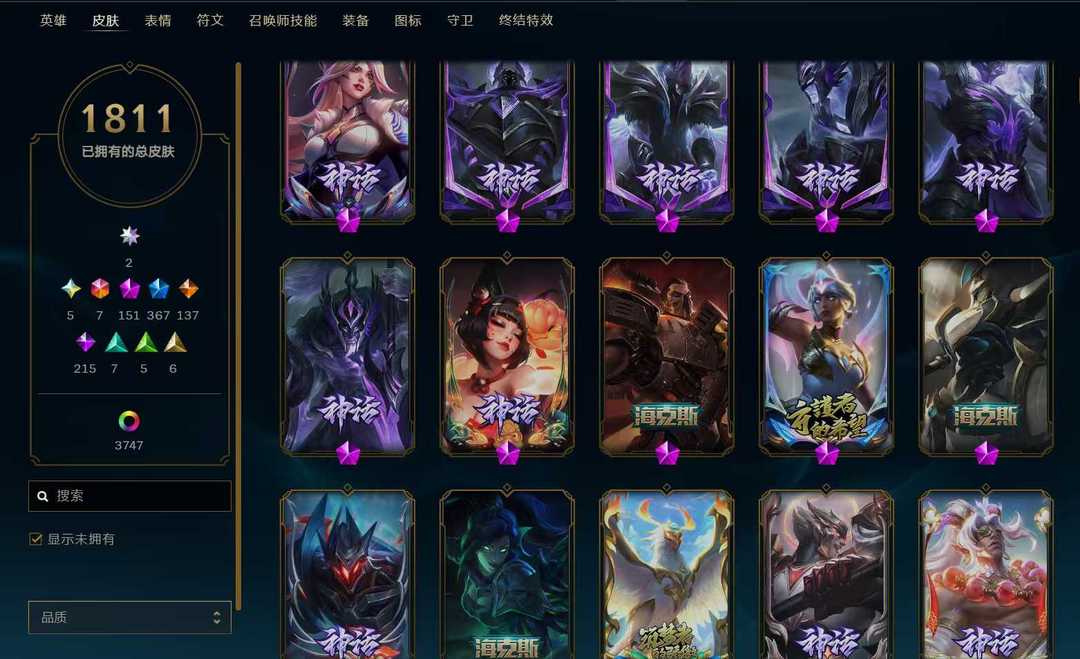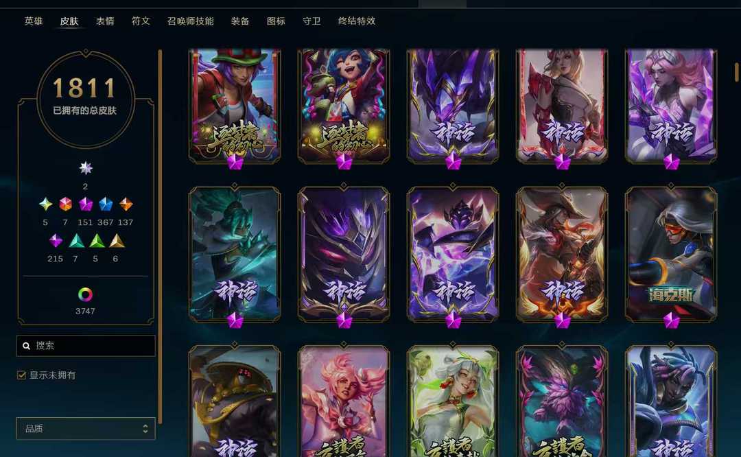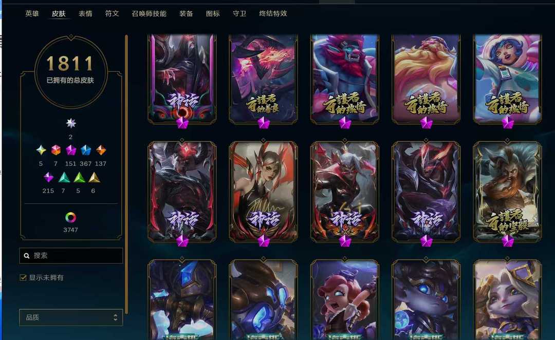 1811原皮顶级皮肤+云顶号⚡双殿堂签名版⚡满圣堂皮⚡221臻彩⚡商城基本清空⚡云顶11神话小小