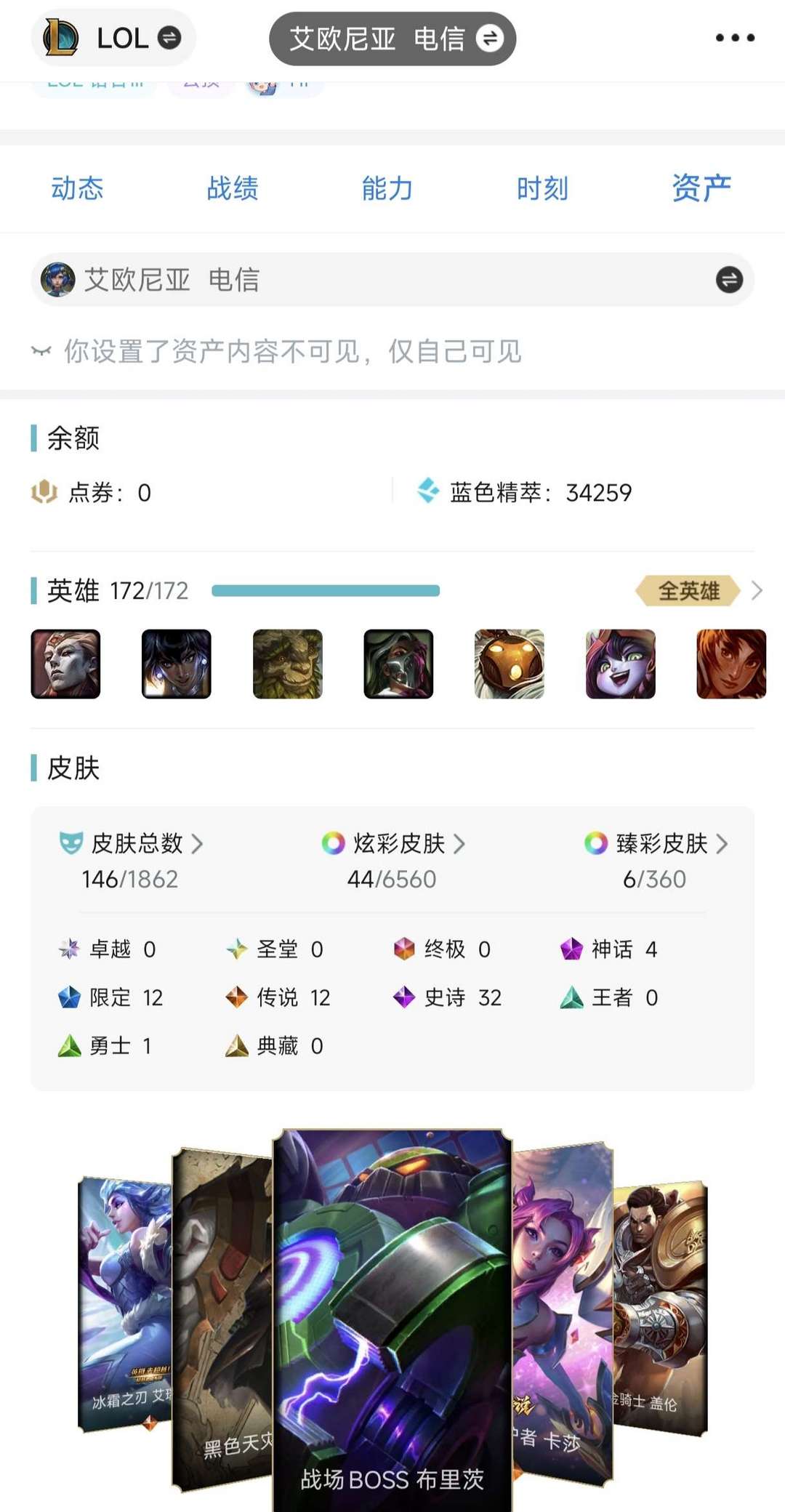 艾欧尼亚可排❤️全英雄可用❤️146皮肤可用❤️炫彩皮肤可用