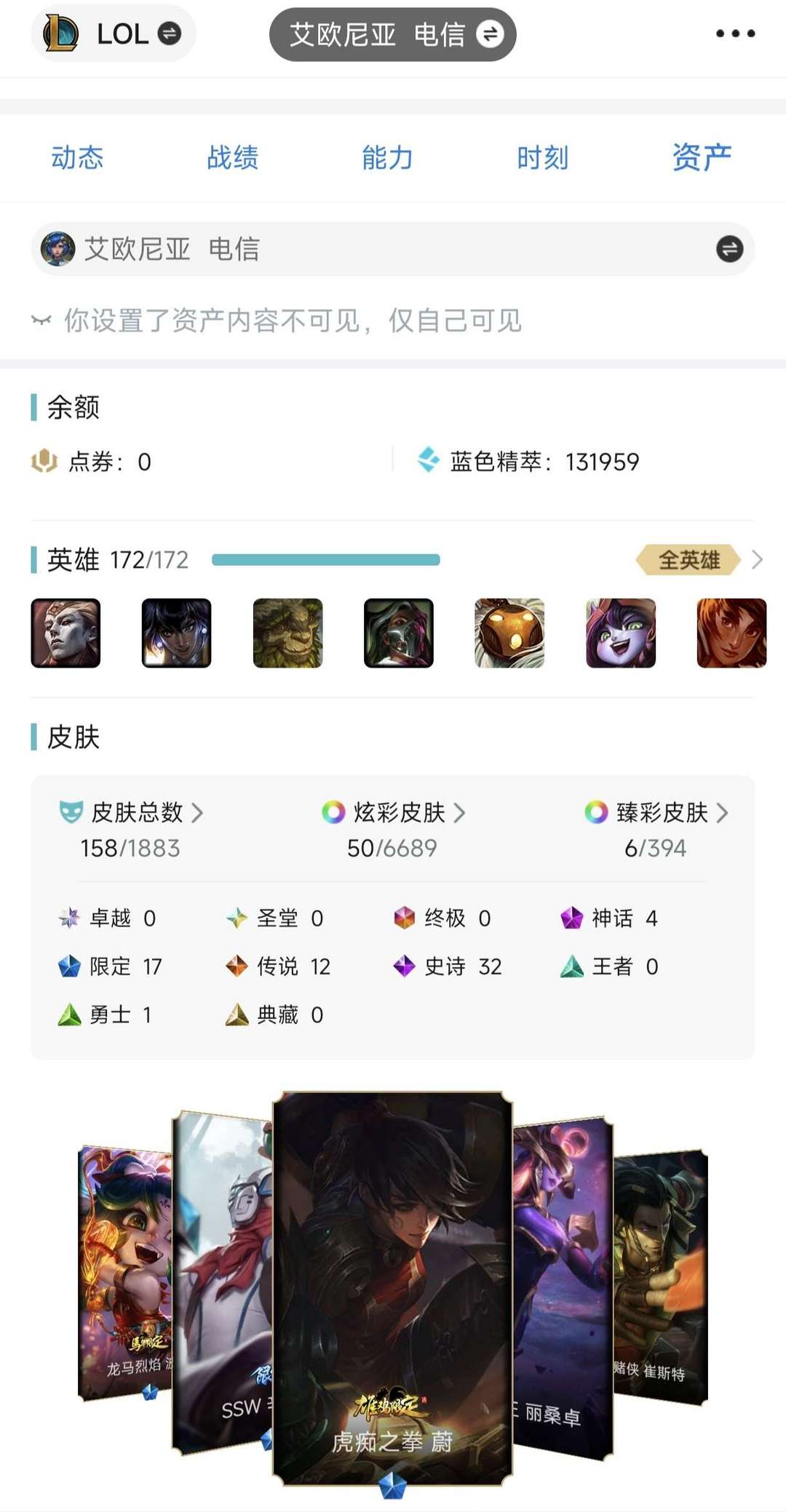 艾欧尼亚可排❤️全英雄可用❤️158皮肤可用❤️炫彩皮肤可用