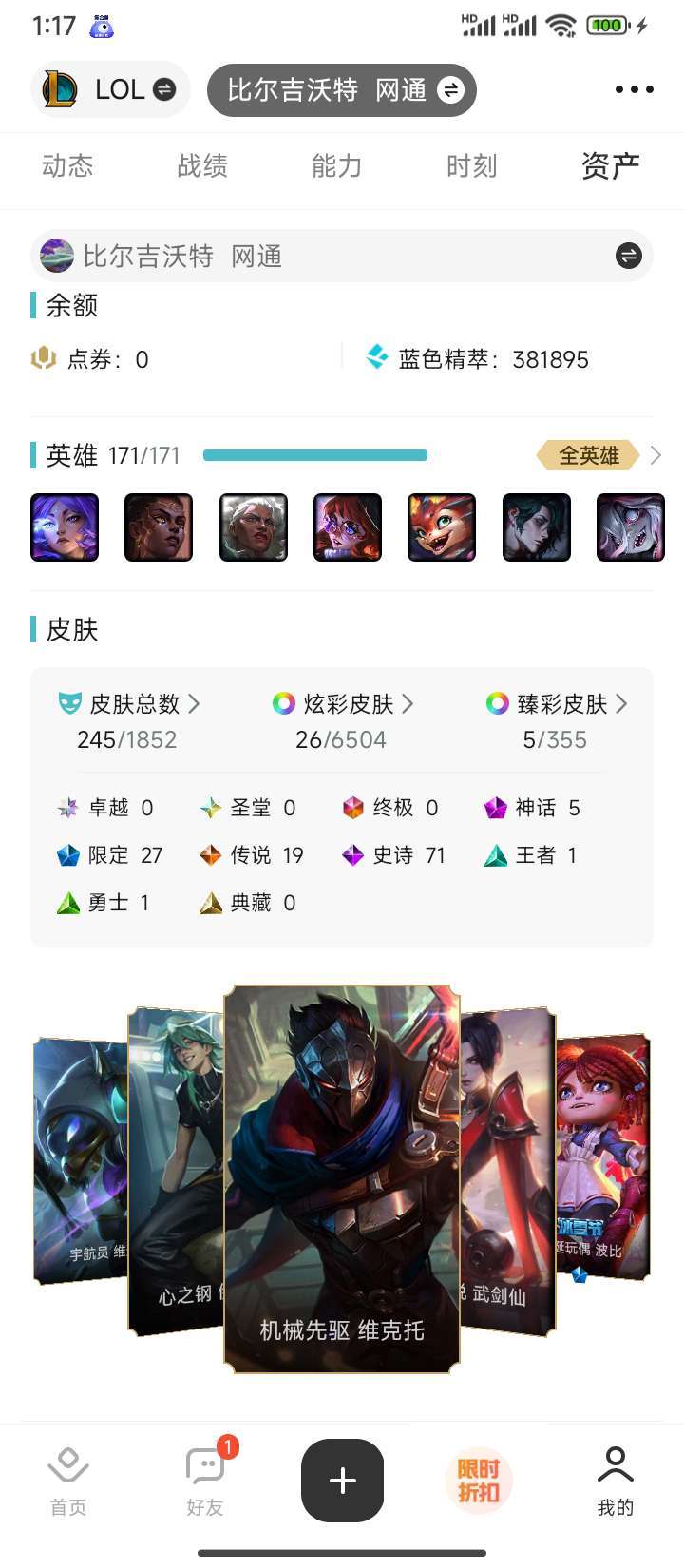 装备描述:满英雄皮肤个个都有需要的上号看看就知道了