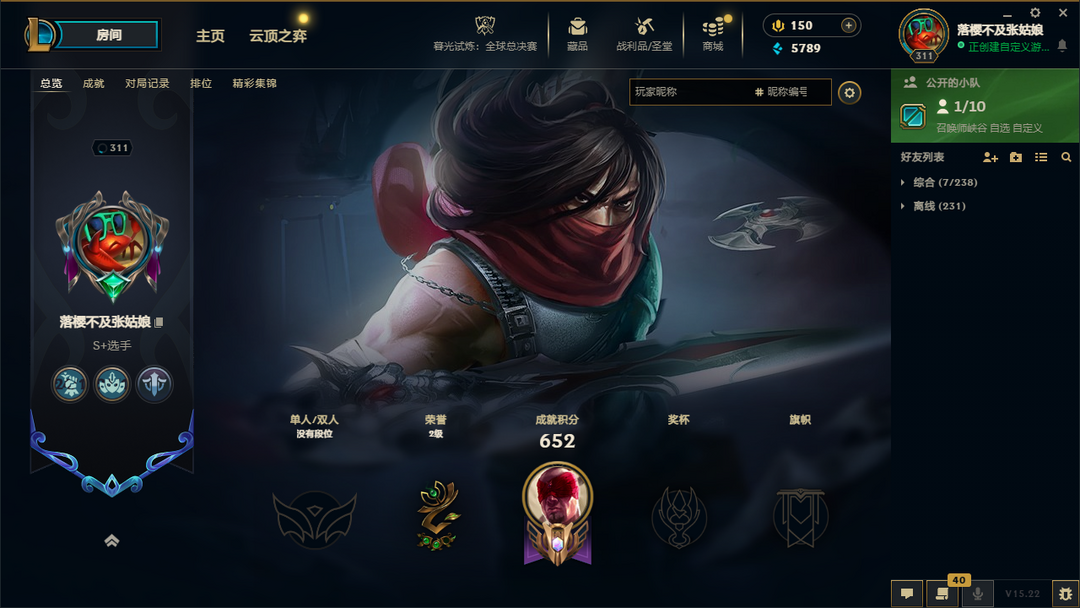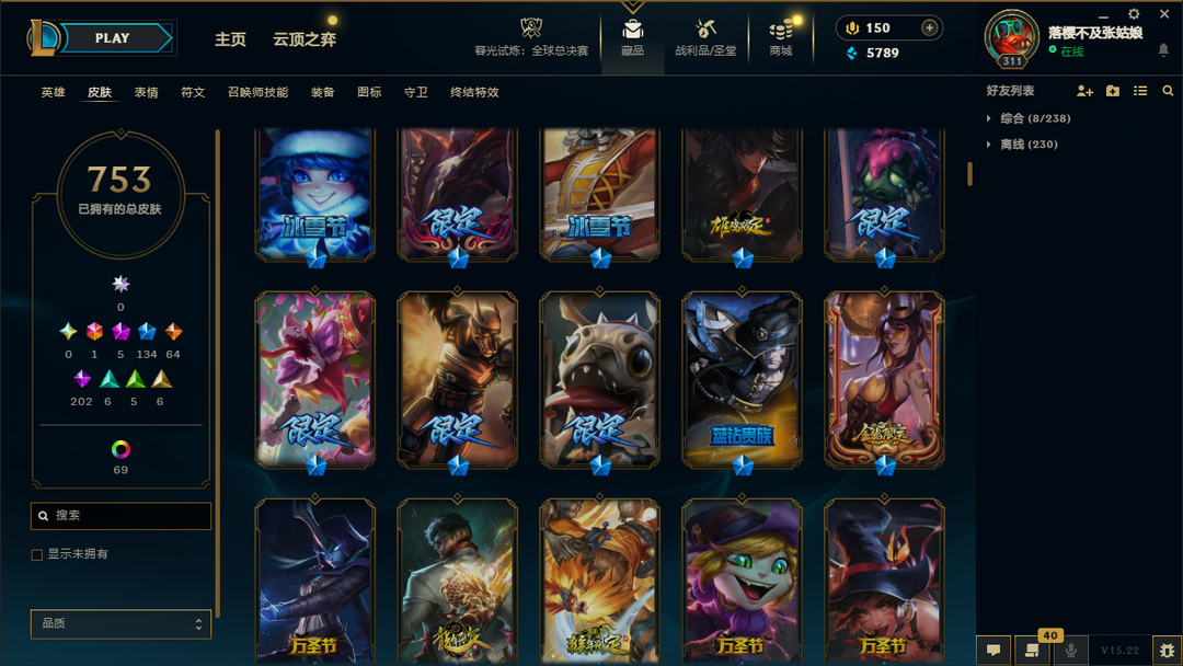 装备描述:❤7000皮肤【联盟二区】可排位⚡龙瞎⚡龙年全套⚡创星璐璐⚡庆典女皇⚡电玩全套:青铜白银【真实黑铁】