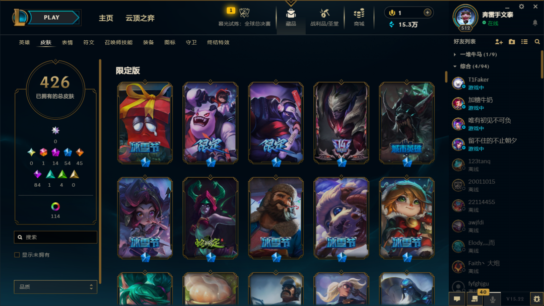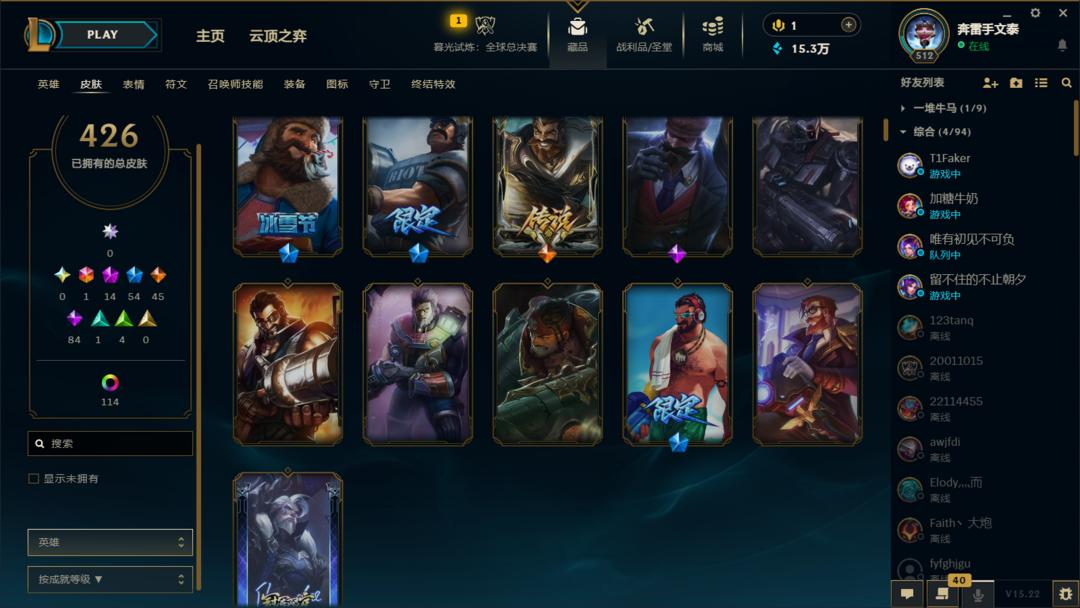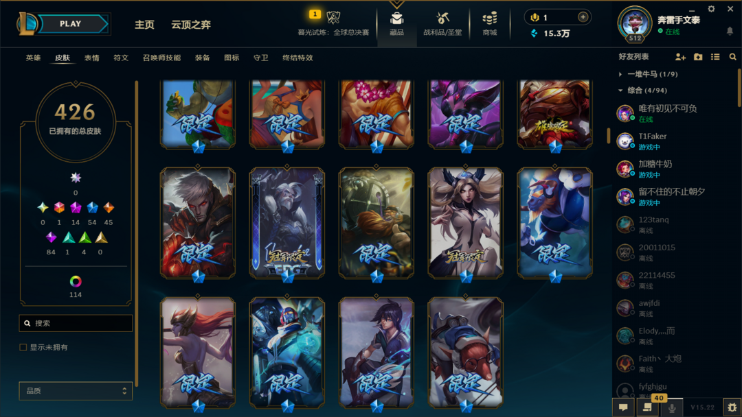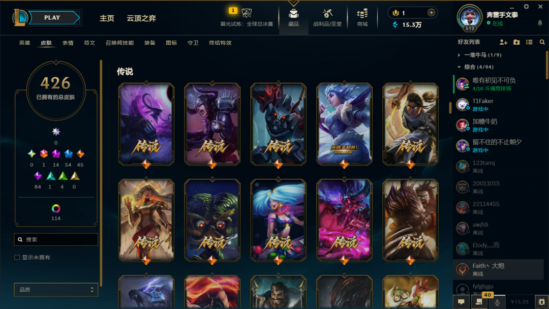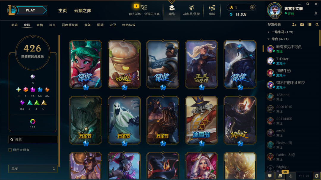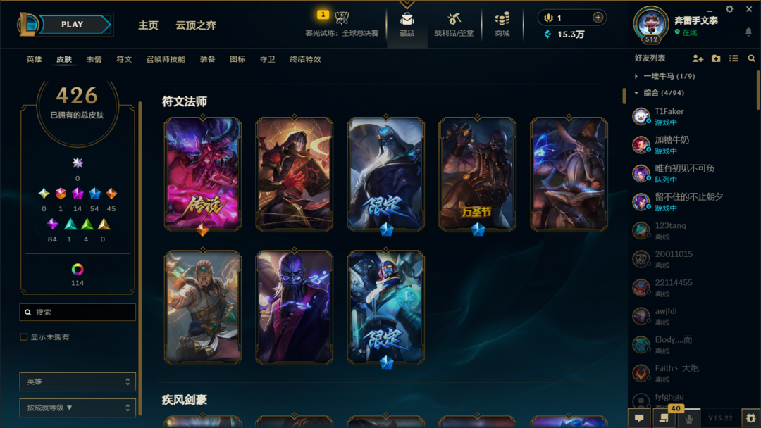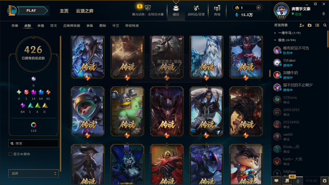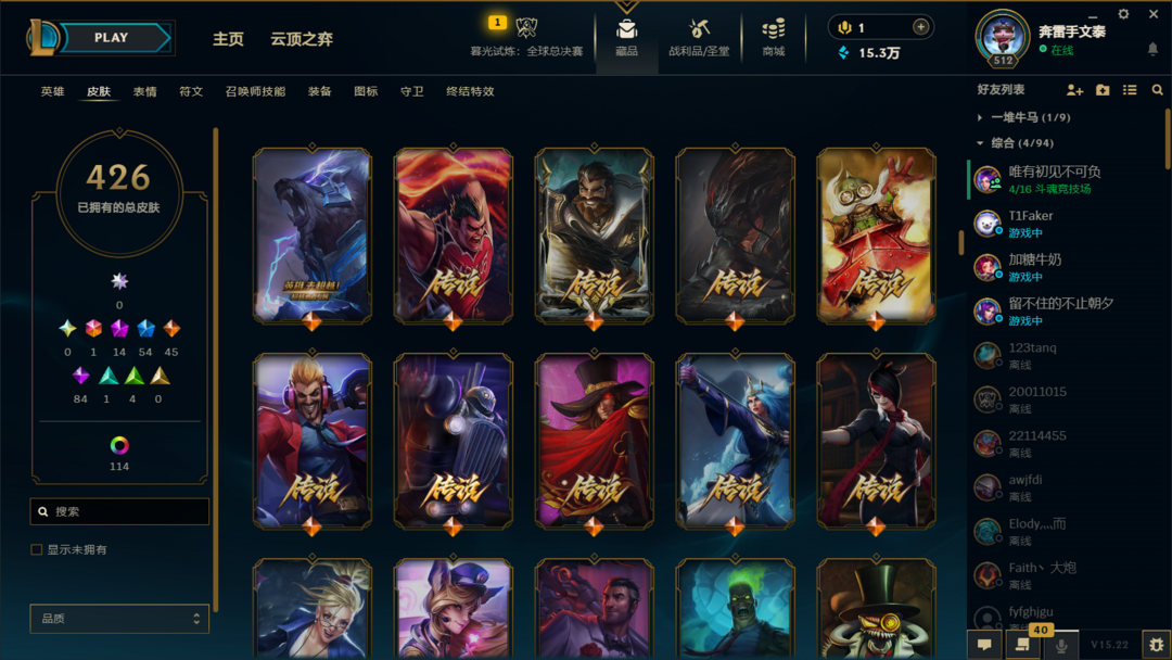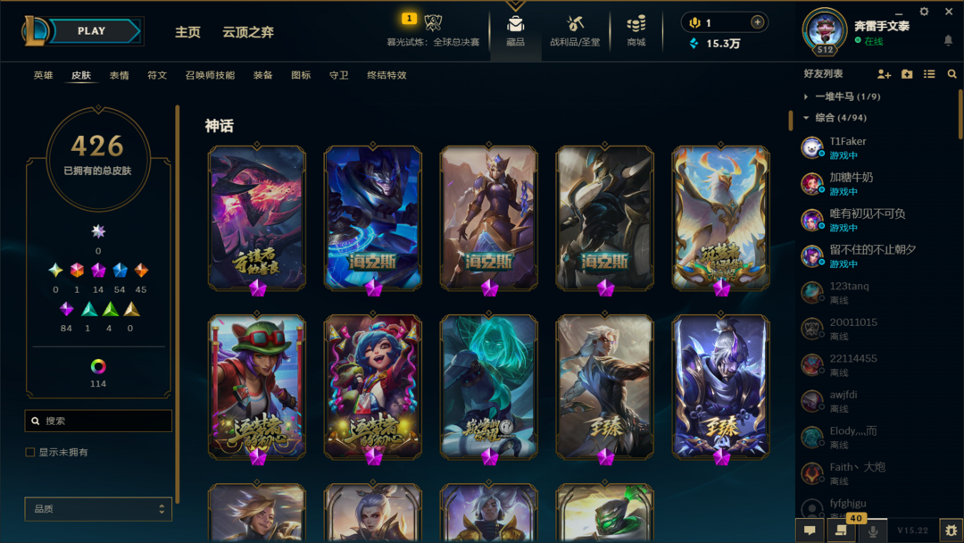 426皮肤|14神话|至臻灵魂莲花劫贾克斯亚索伊泽瑞尔|男枪瑞兹稀有皮肤都有