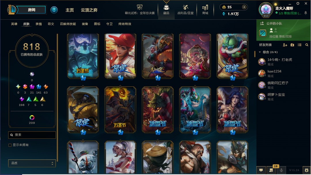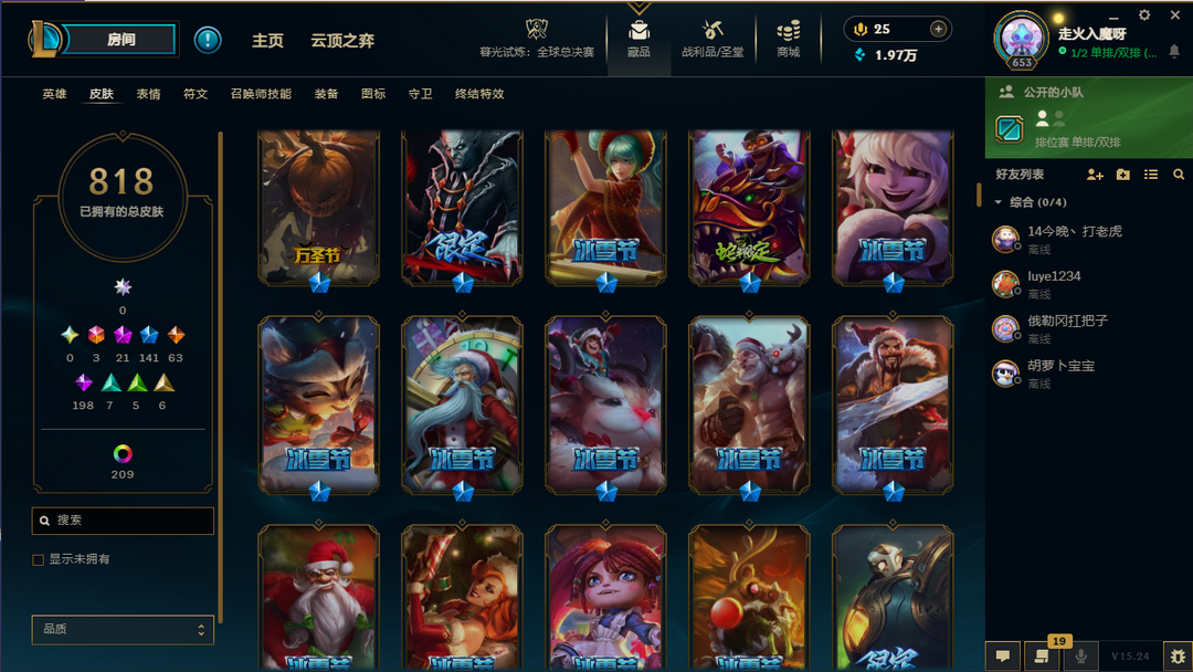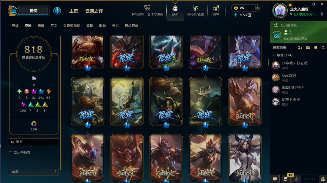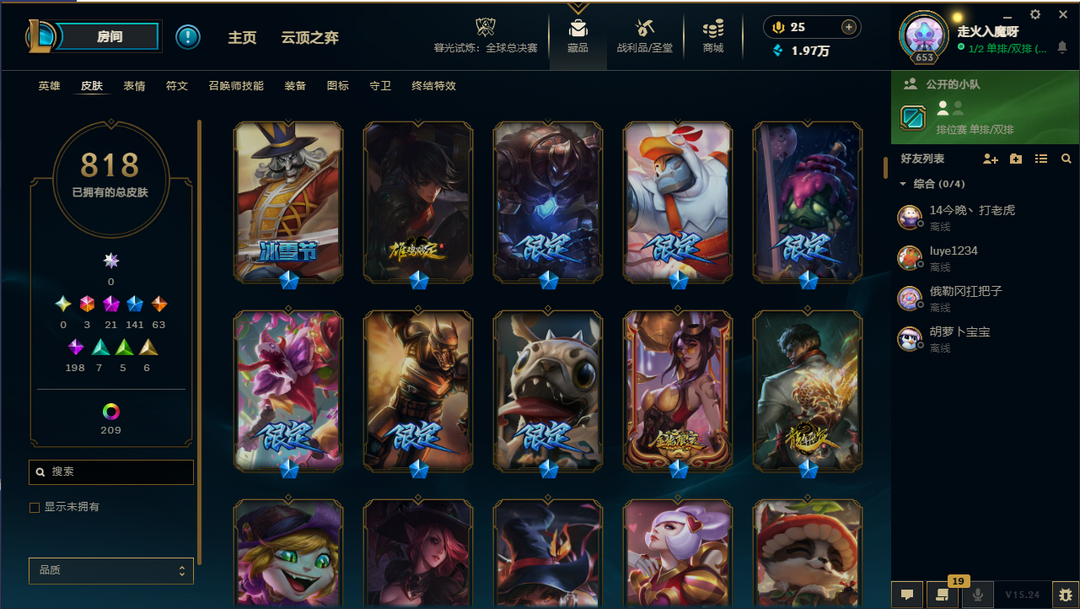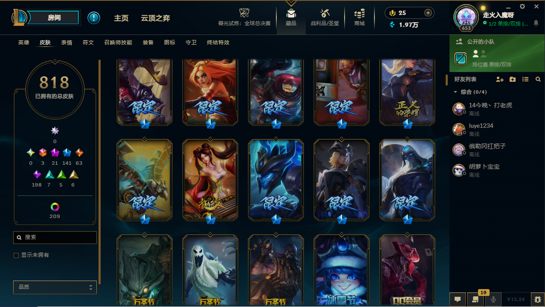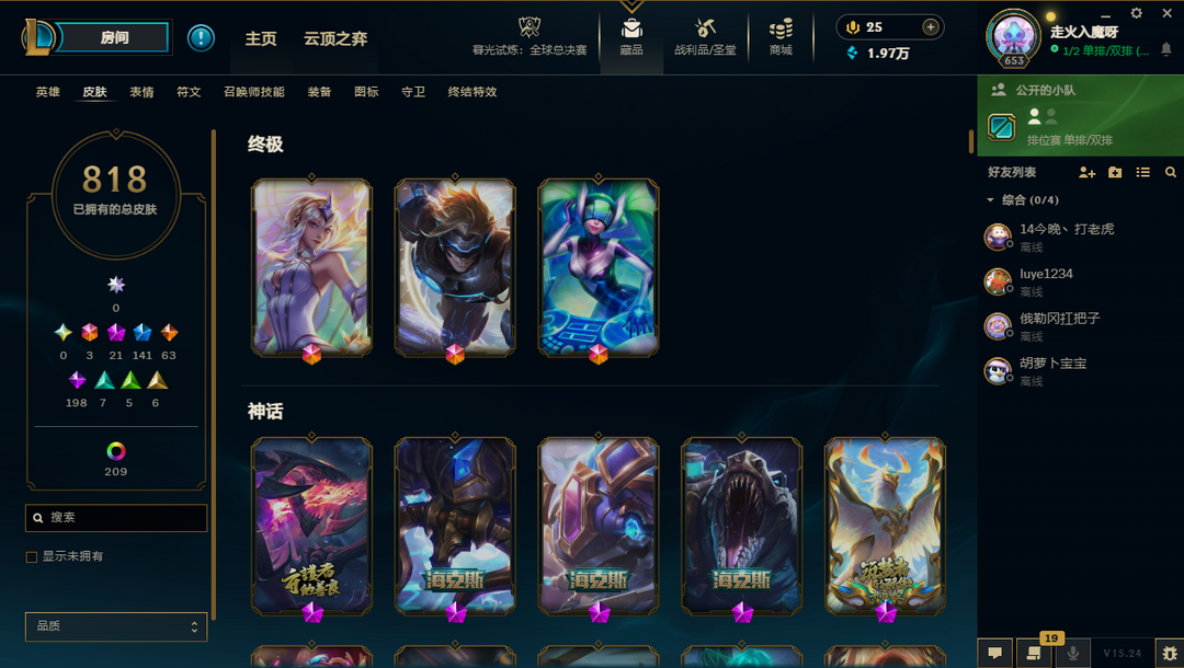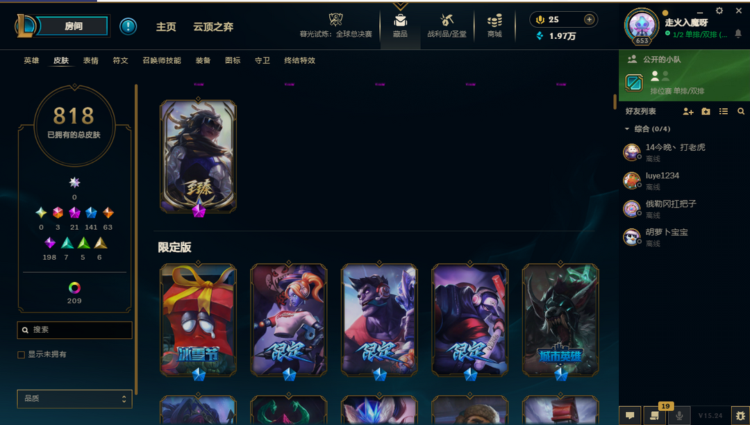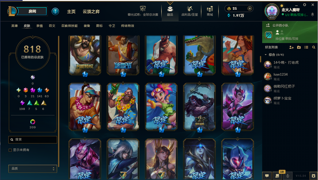 【联盟三区】龙瞎/FPX冠军套带签名/海滩派对系列皮肤/年限皮-神话21-限定141/原皮数量818