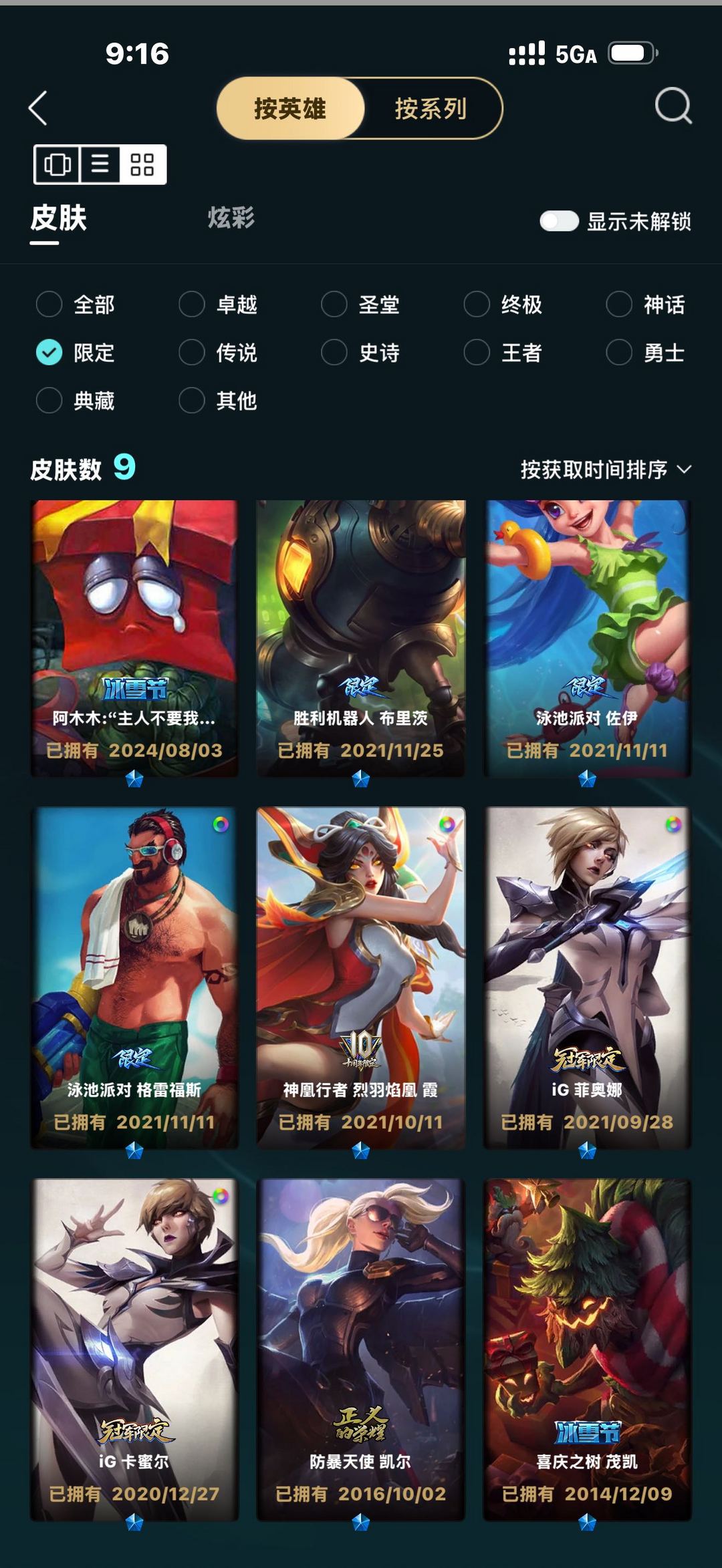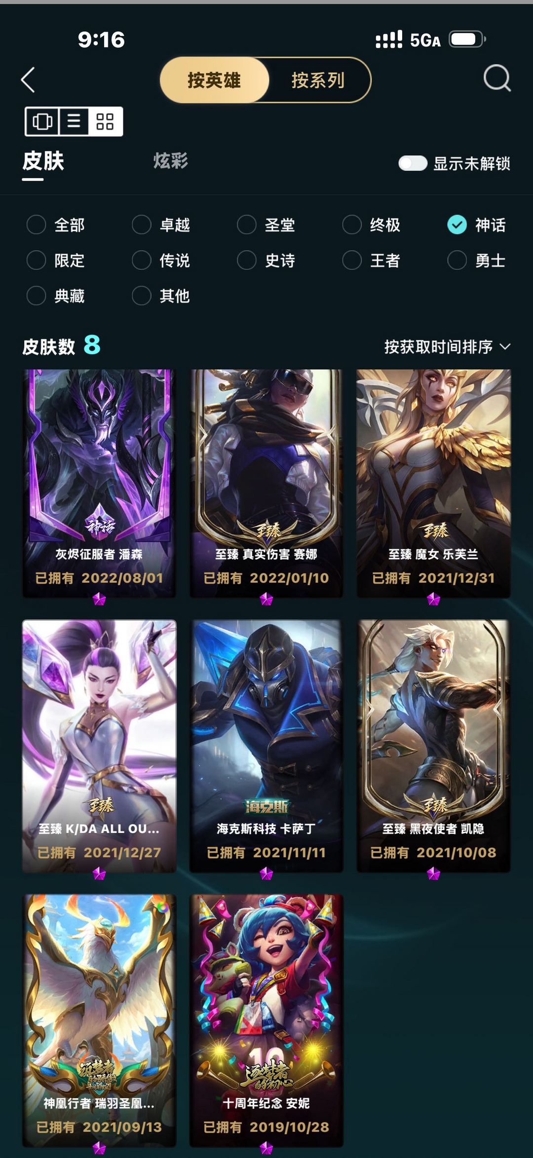 装备描述:8神话9限定14传说22炫彩170英雄,适合单双灵活排位补位号