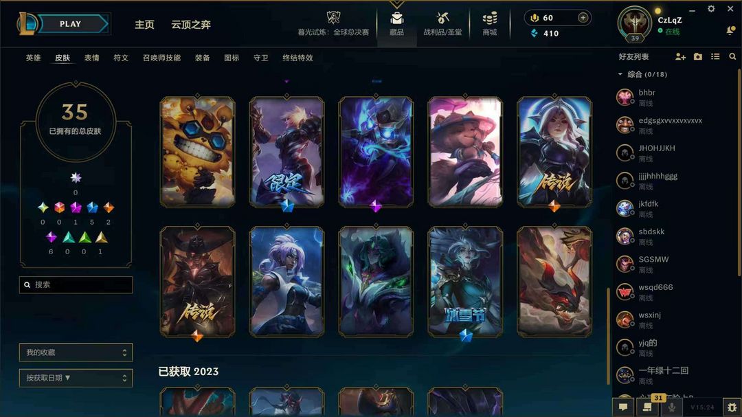 装备描述:凌雪之月凯隐,暗星卡兹克,法国皇室厄运小姐,深渊恐惧锤石,战场boss贝尔维斯。冲击之刃起亚娜,月蚀骑士雷欧娜。灵魂莲华提莫。灵魂烈焰布兰德,冠军之刃瑞文,小蜜蜂吉格斯。地下都市梦魇阿卡丽,狗头猫咪优米。警用是做体K9内瑟斯,糖果之王艾翁,15周年希维尔,双城之战楚雨荨,窃魂修罗斯拉斯。灰烬领主索尔,钢铁终结者赛恩。幻零战斗瑞文,灵魂莲华约里克。冠军强为乐夫兰,神龙之力乌迪尔。五杀摇滚死歌。原计划艾克,山海绘卷妮蔻