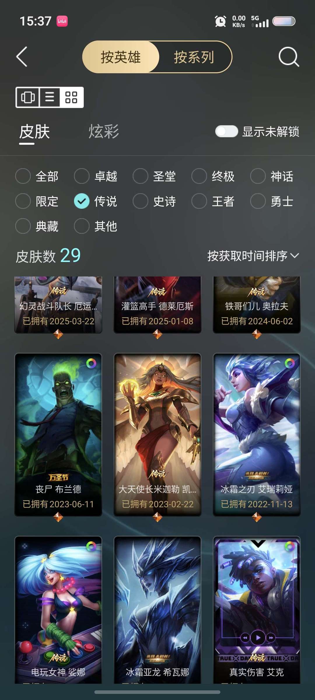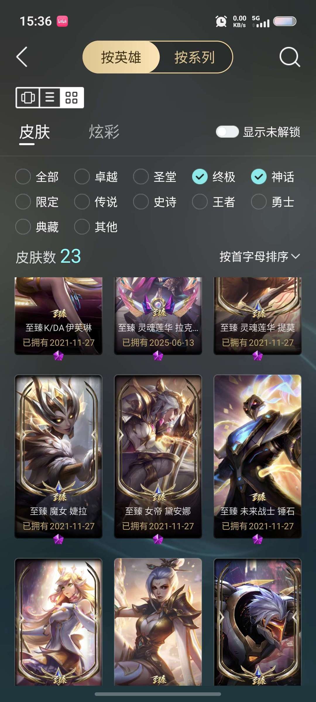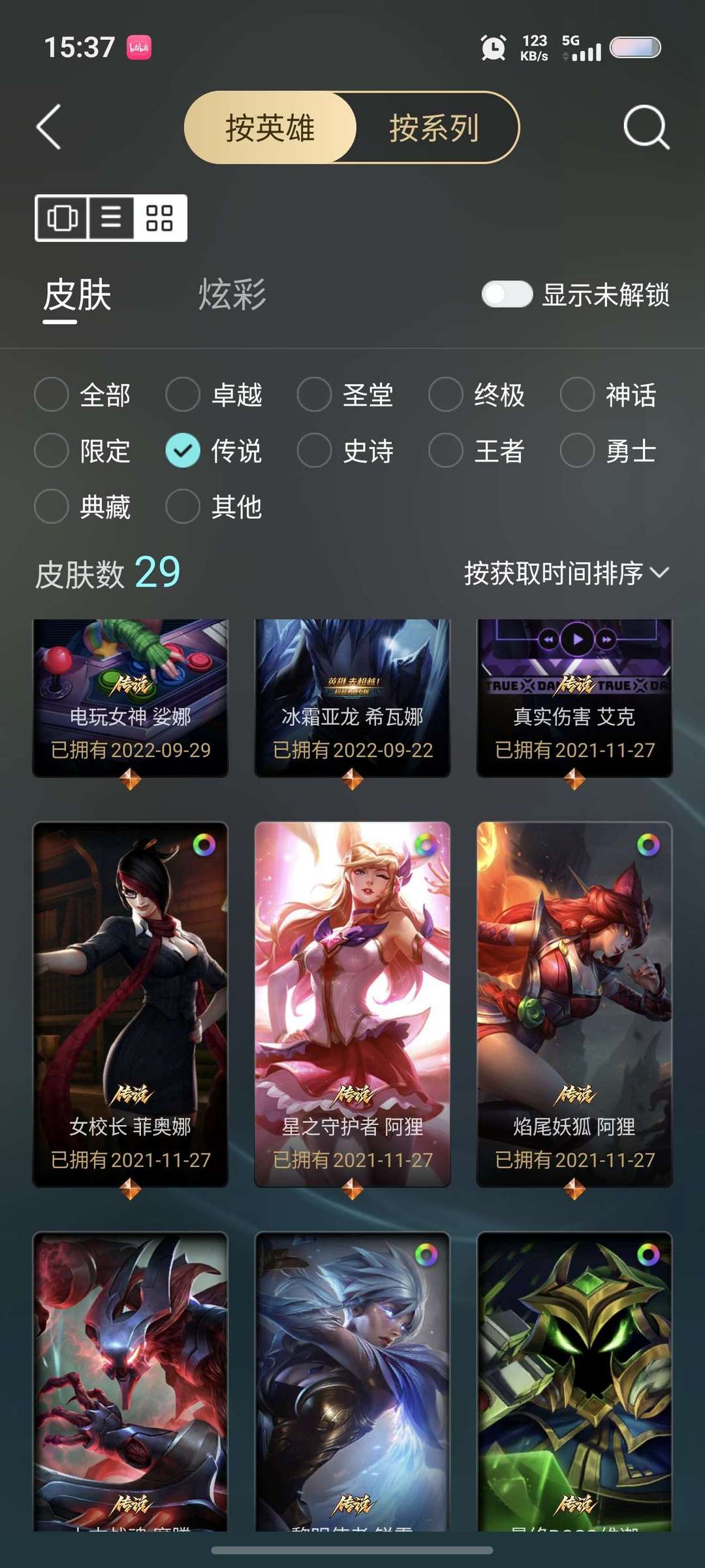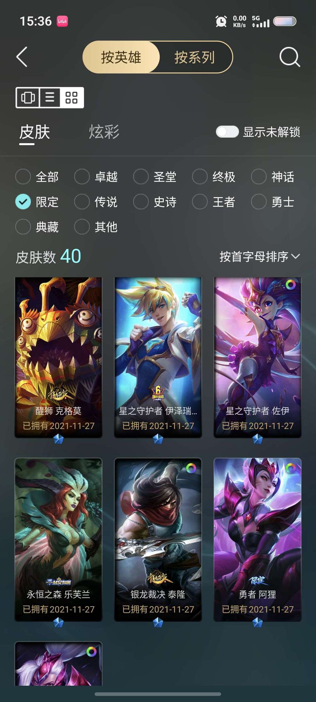 全英雄172个40个限定皮肤和11款至臻皮肤神话皮肤22个传说皮肤29个 总269个皮肤当前赛段黄金