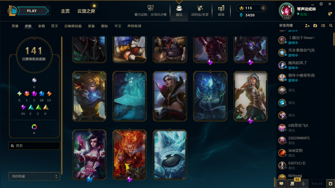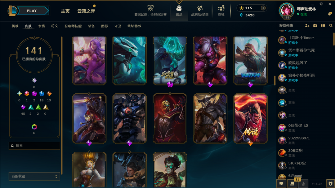 装备描述:请文明租号毁号开挂的绕道,平台后台都有你的实名个人信息+IP地址,要承担法律风险,遇到上不去号可以多试几次,本账号已经开通了令牌授权---------可排位+141P+龙虾龙猴+ssw全套+VN情人节战场boss亚索+神王诺克
