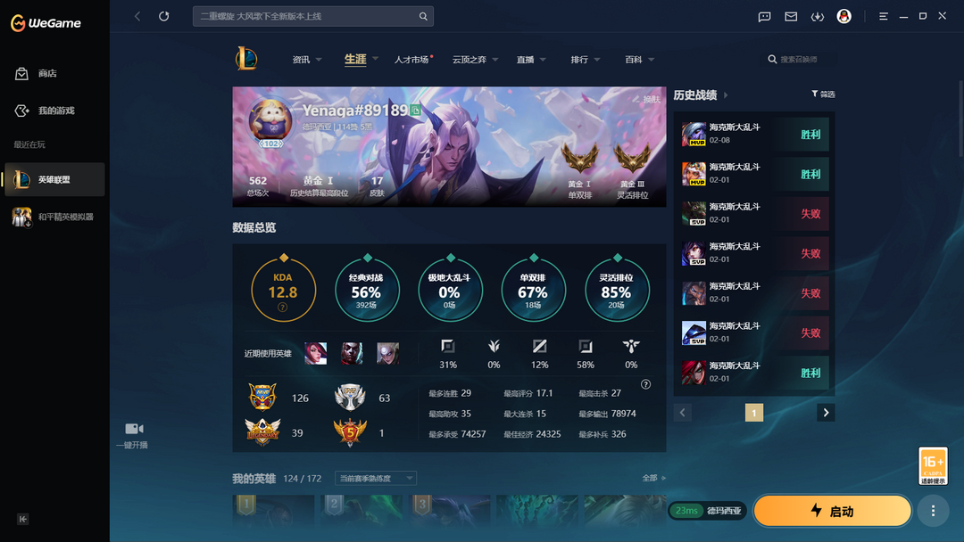 游戏区服:英雄联盟-联盟五区-德玛西亚
