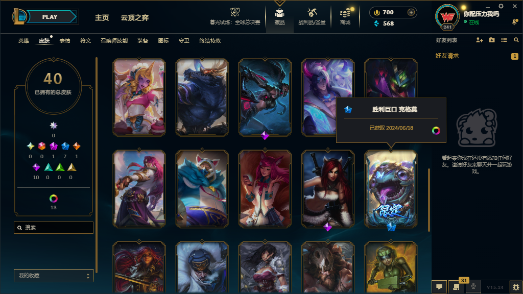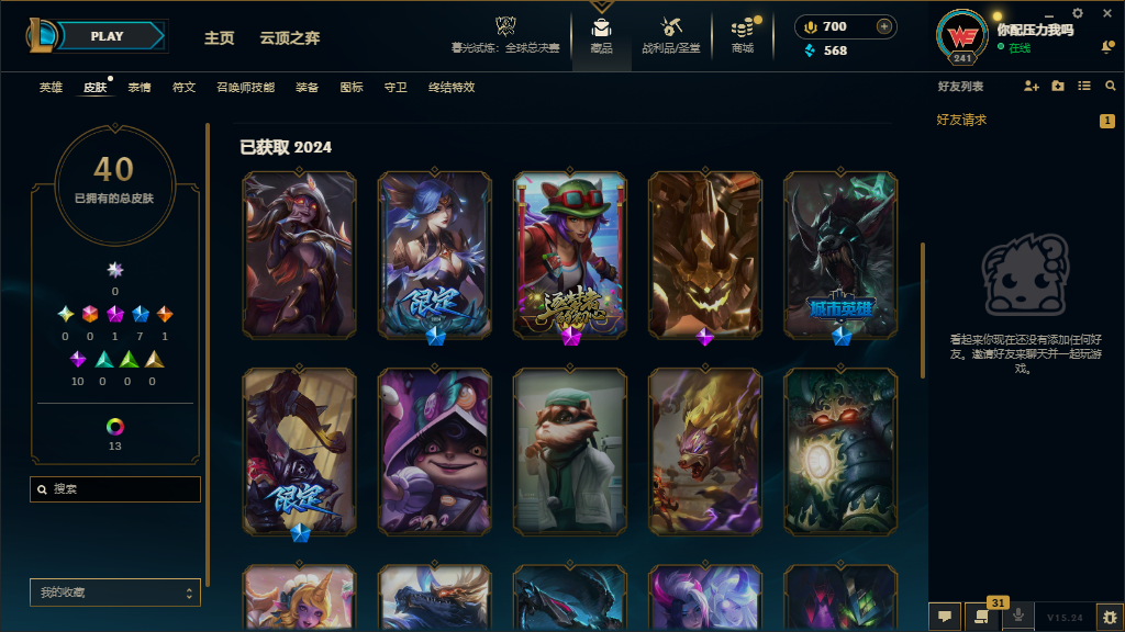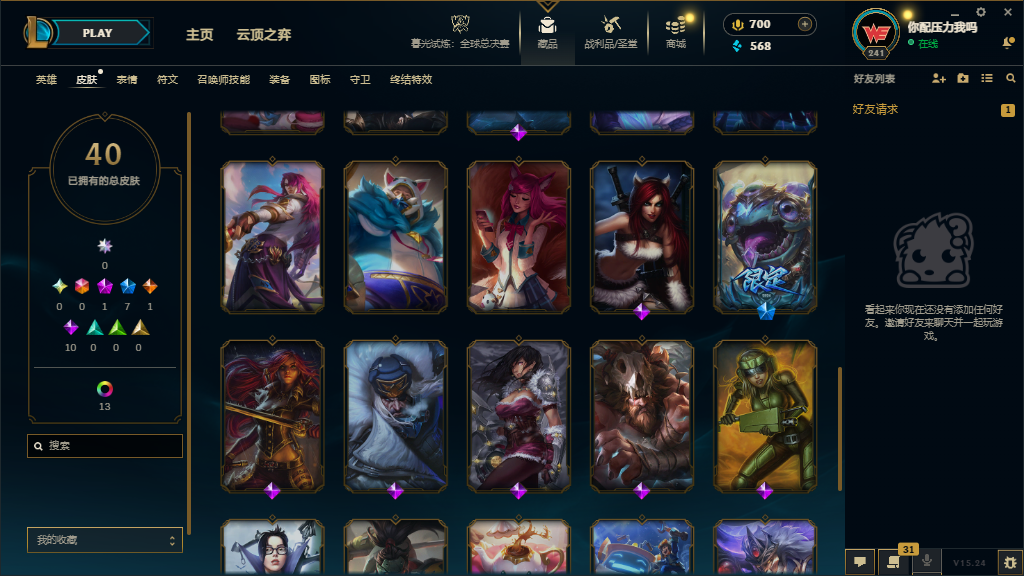装备描述:可排位☆129个英雄40个皮肤女警官蔚☆胜利之王蛮王☆战斗学院永恩☆风纪委员阿狸☆咖啡甜心索拉卡☆胜利剑圣☆北岭前线斯维因☆钢铁之心希维尔☆四神之力乌迪尔☆前线指挥官卡特琳娜☆