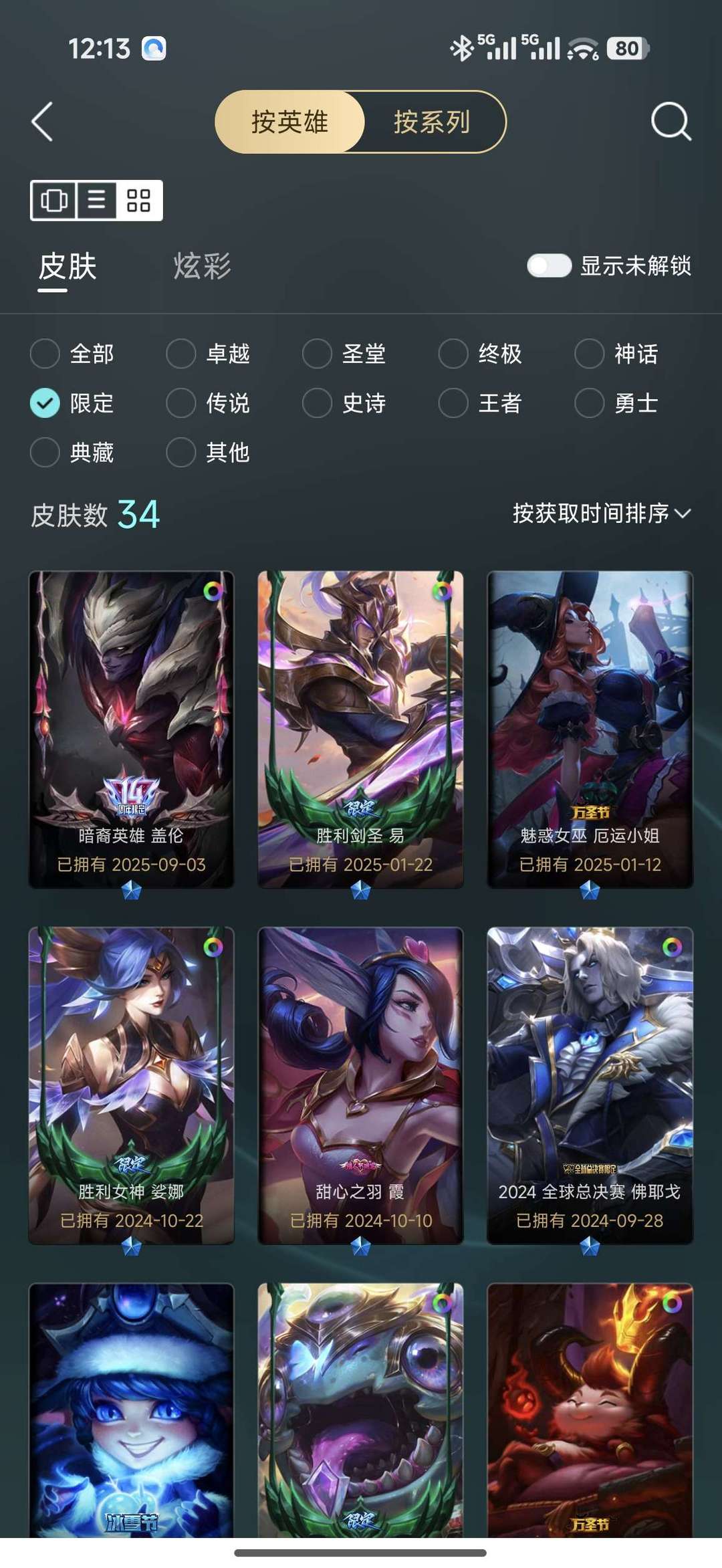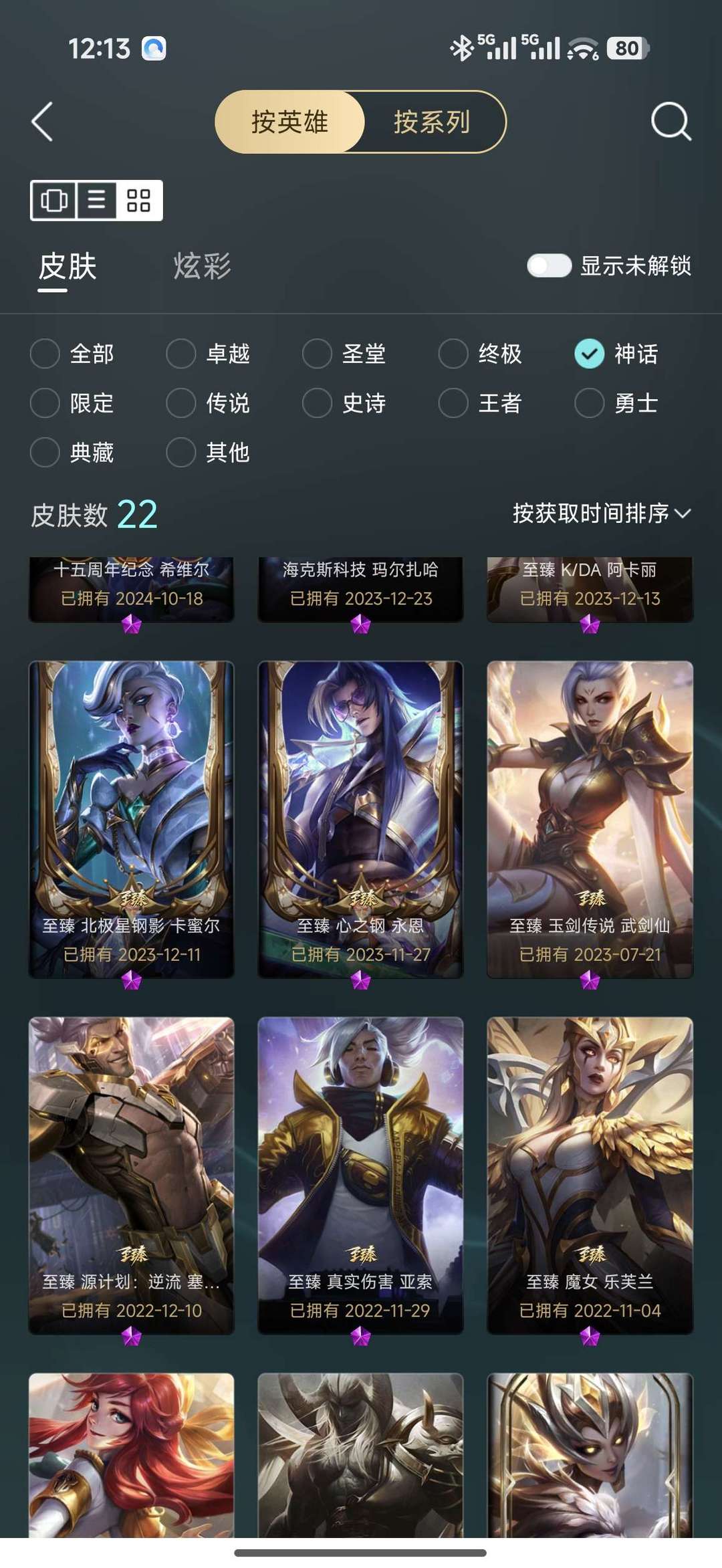 装备描述:全英雄 324个皮肤 22个神话皮肤 33个限定皮肤 41个传说皮肤