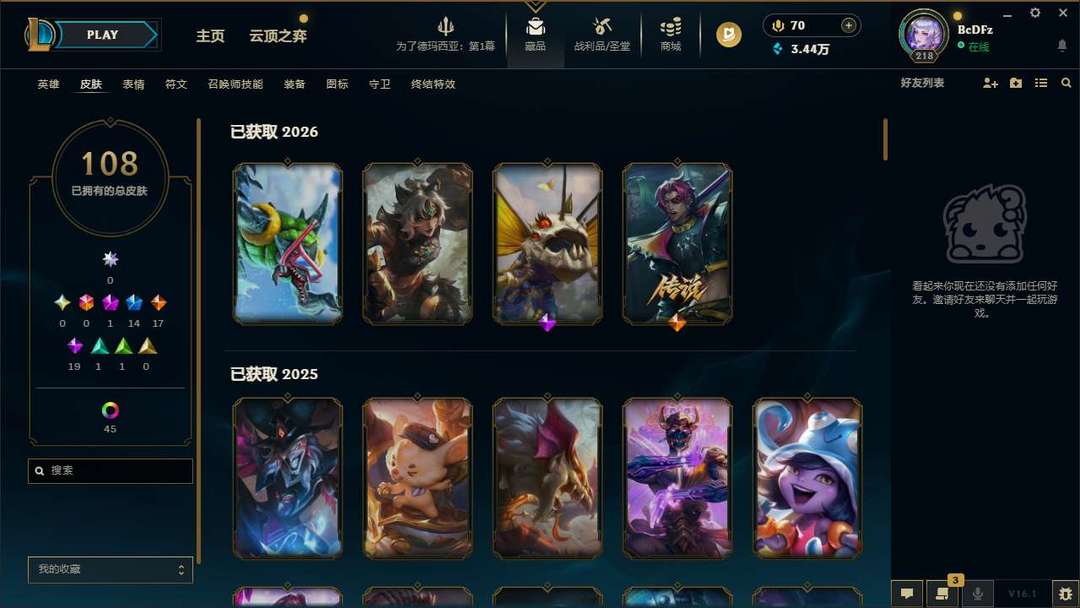游戏区服:英雄联盟-联盟五区-无畏先锋