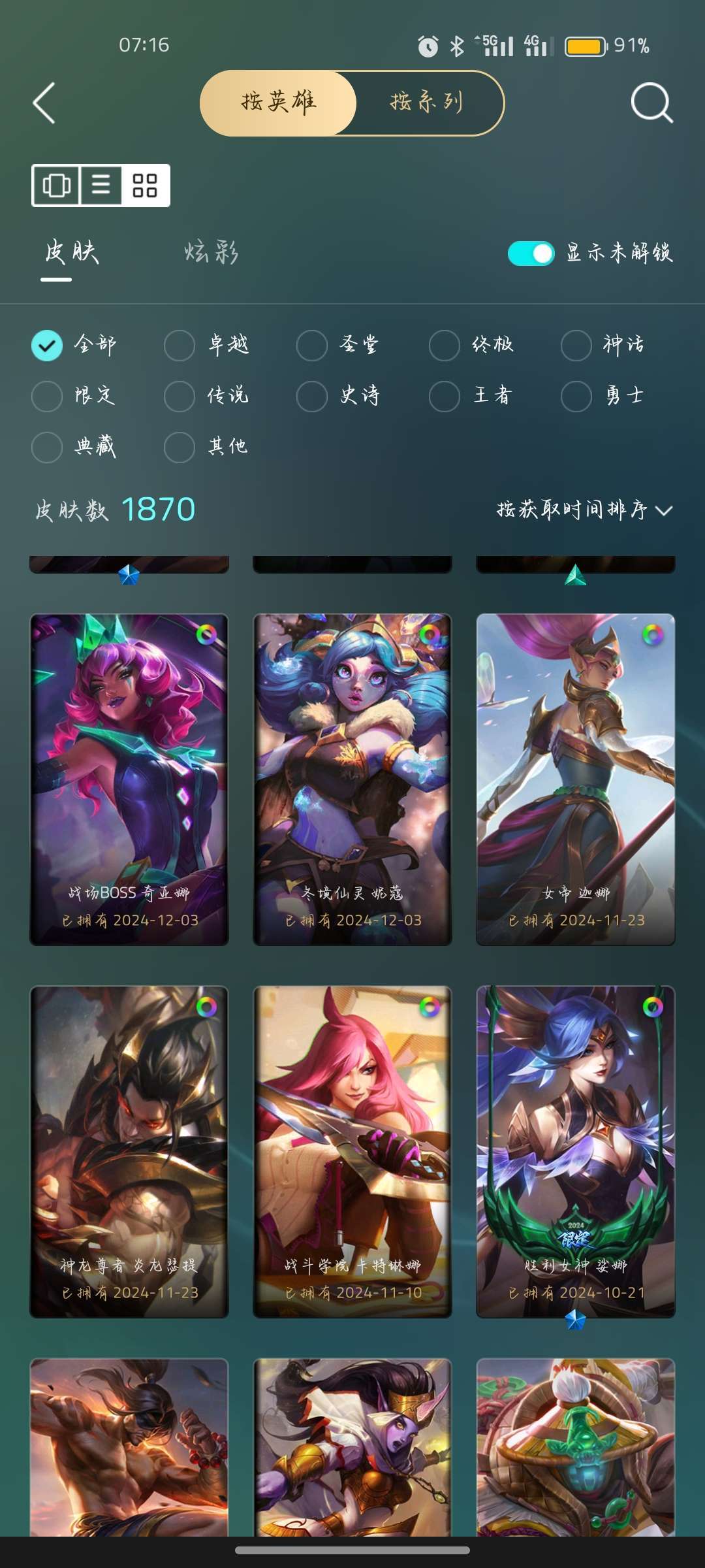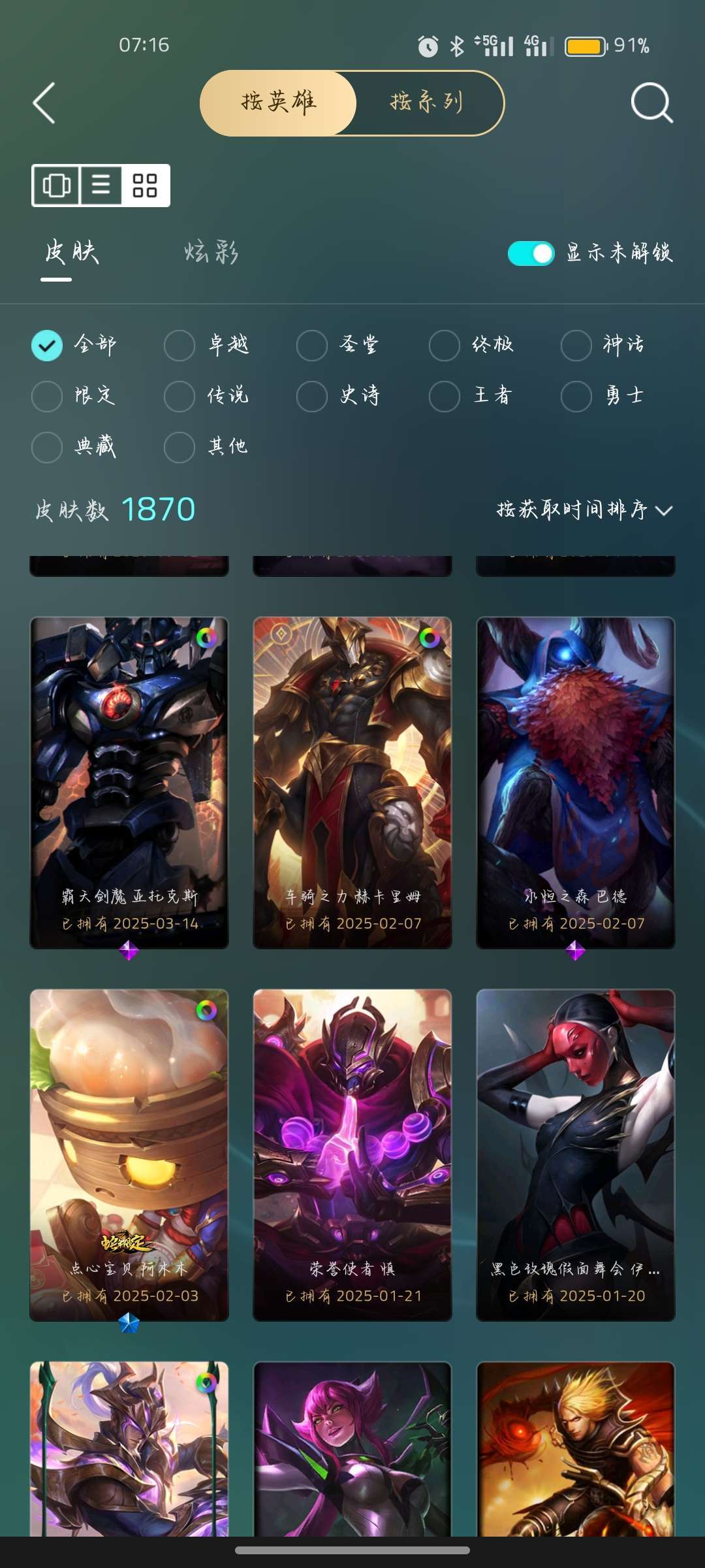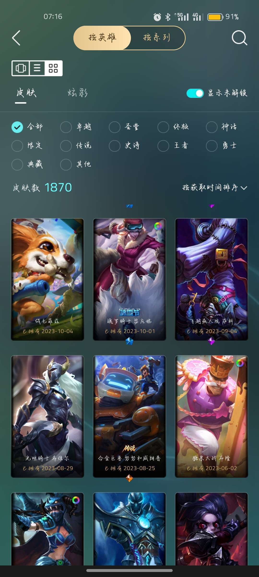 全英雄(可排位)+至臻皮肤+稀有皮肤,至臻海克斯。