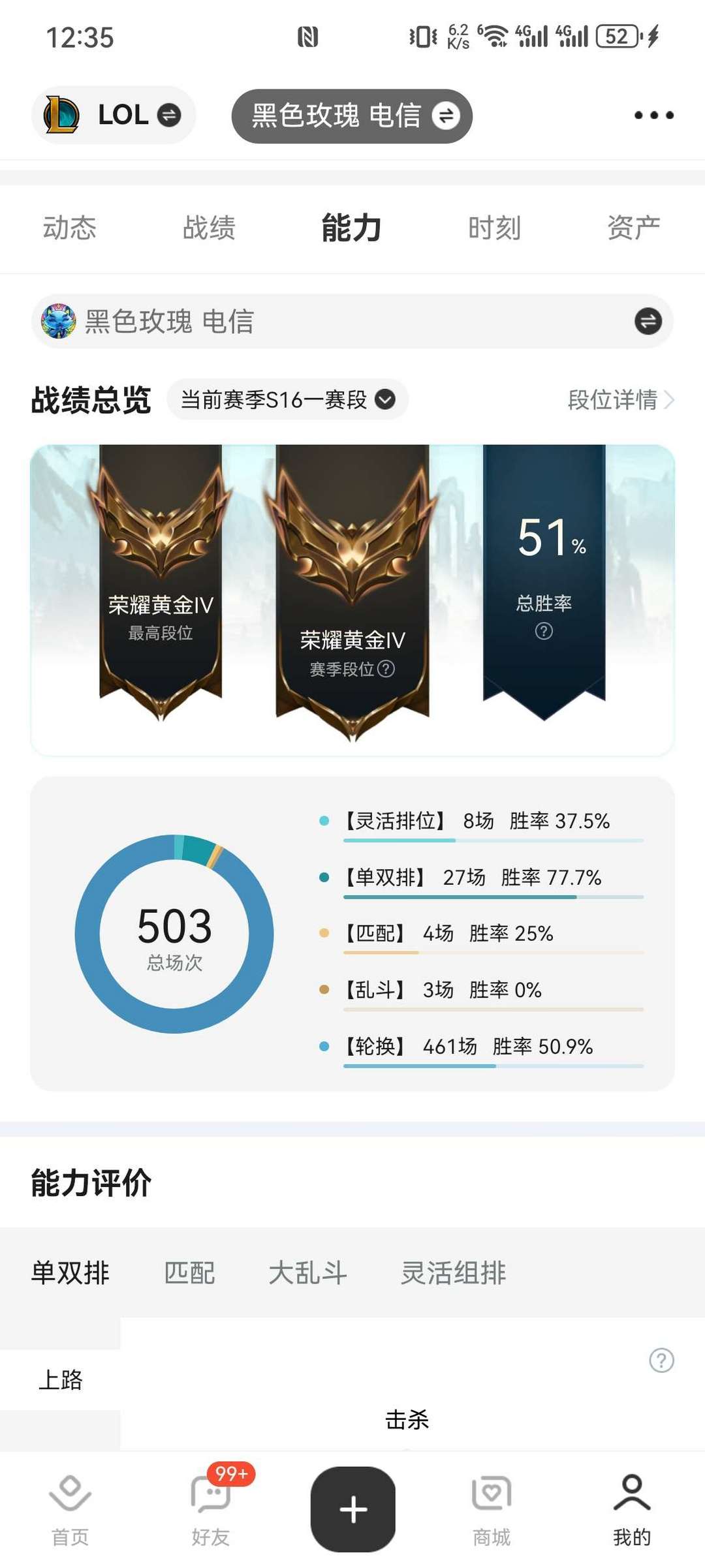 段位:726级 荣耀黄金IV