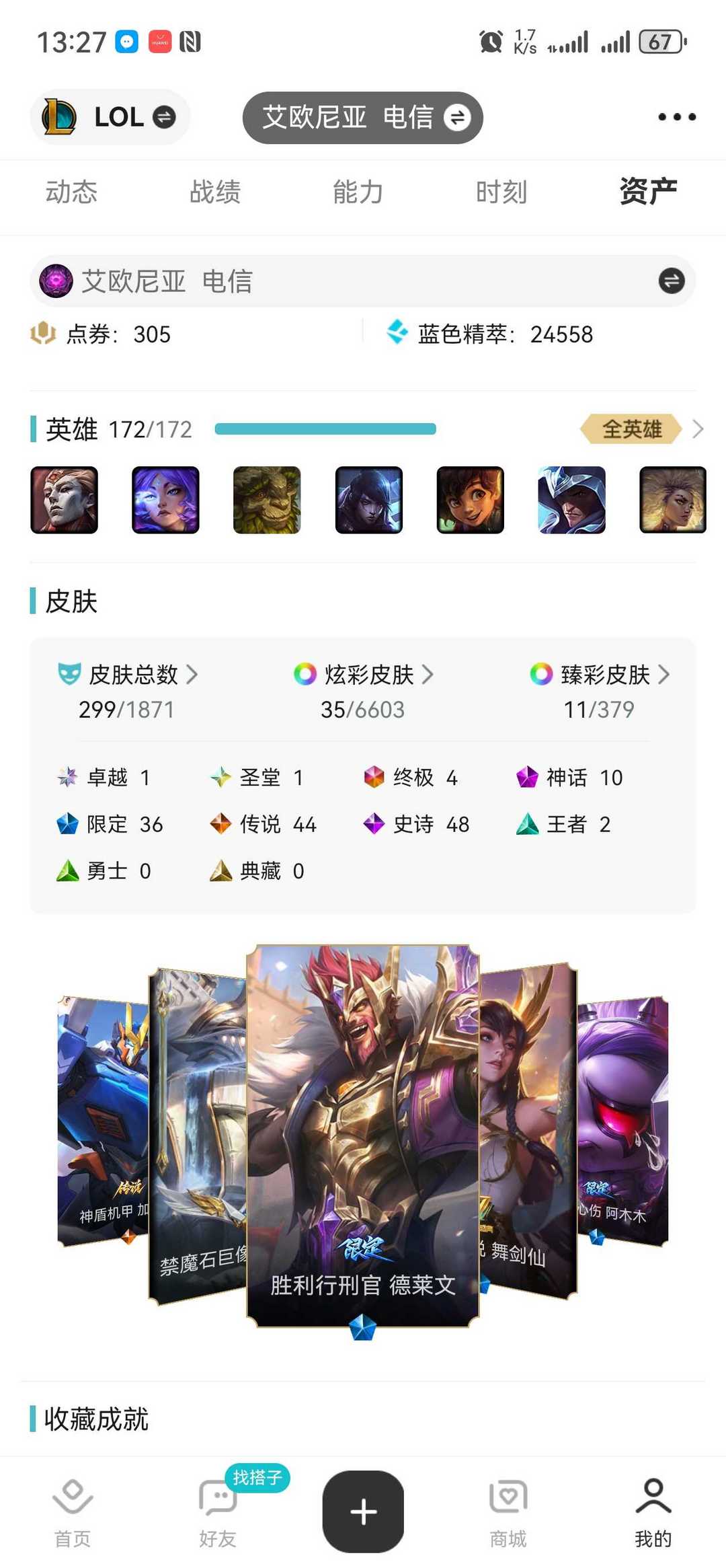 全英雄❤️ 300+稀有皮肤❤️女神账号Buff❤️助力您上分如喝水。