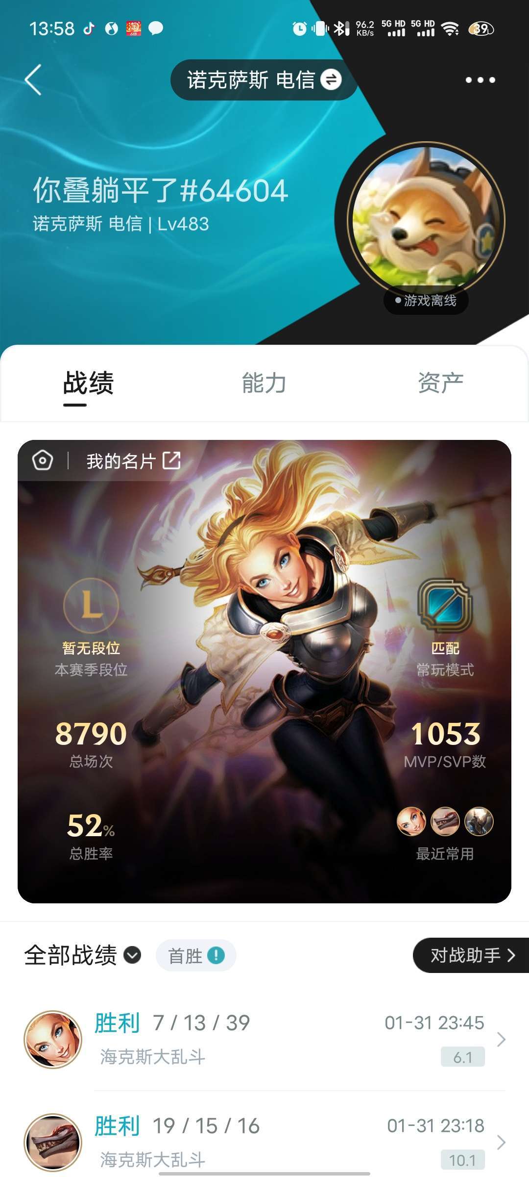 段位:483级 当前赛季无