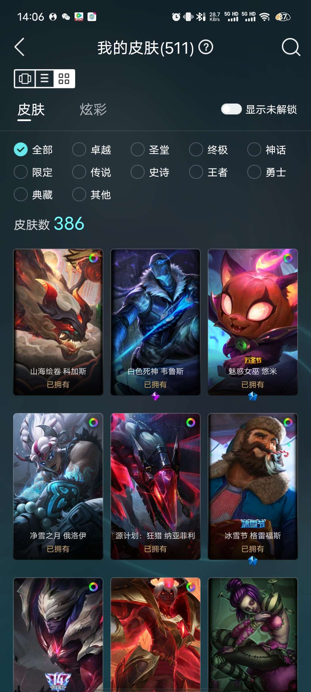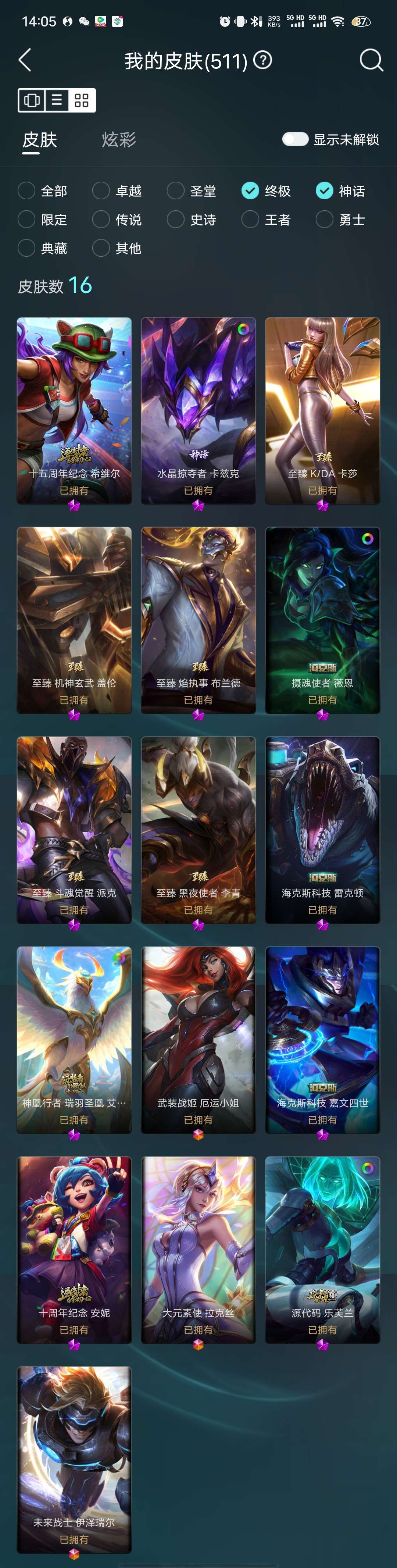 400p 至臻卡莎黑夜瞎子 机甲盖伦 海克斯皇子鳄鱼vn