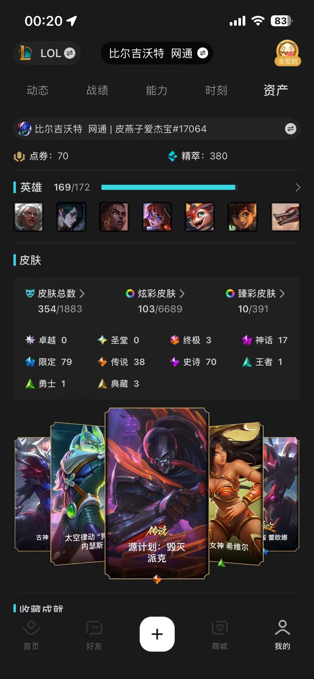 【可排位】【比尔吉沃特】皮肤354+炫彩103★实时更新★异常秒解★极速上号