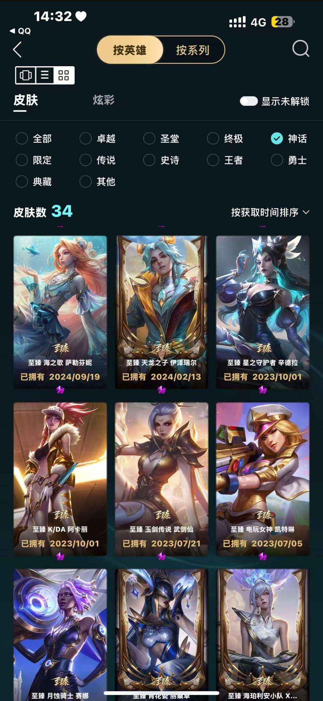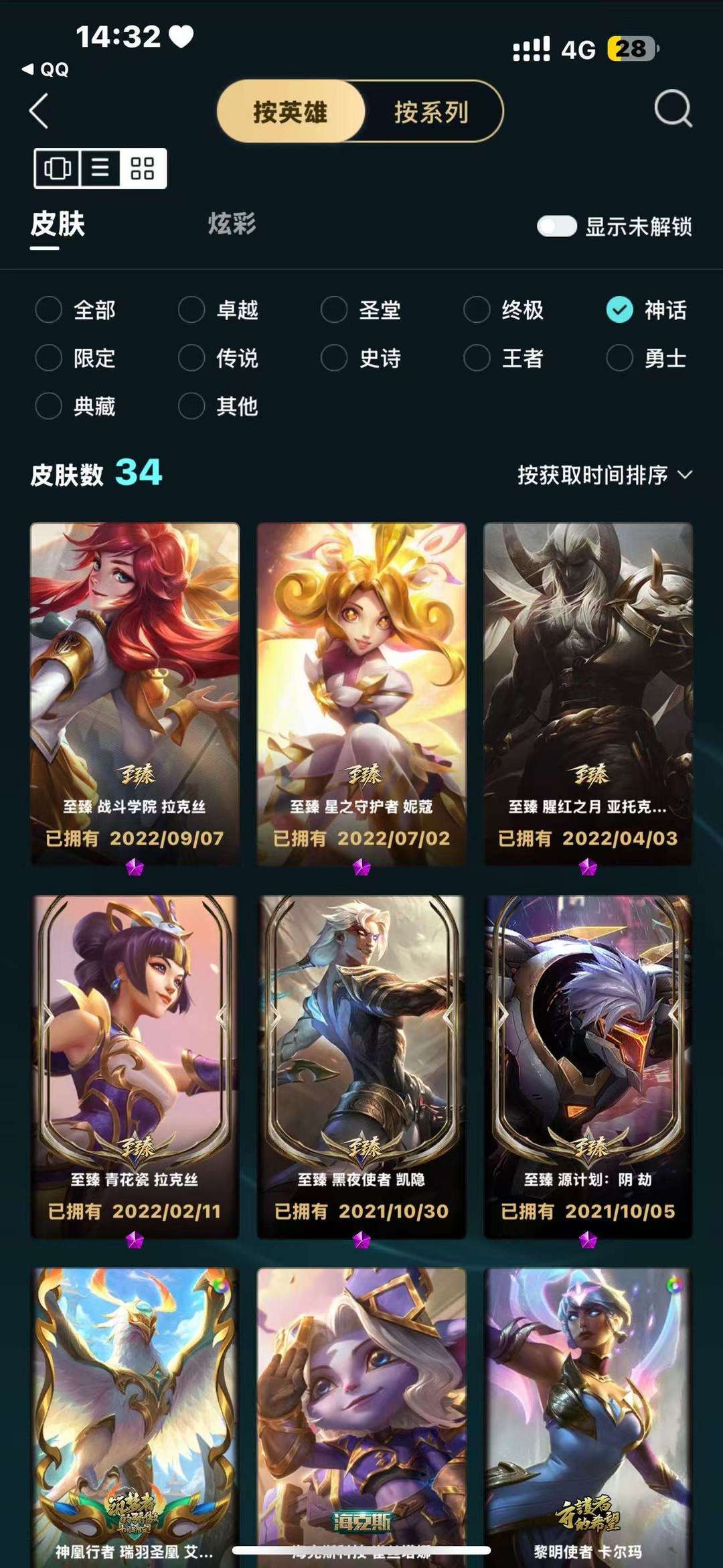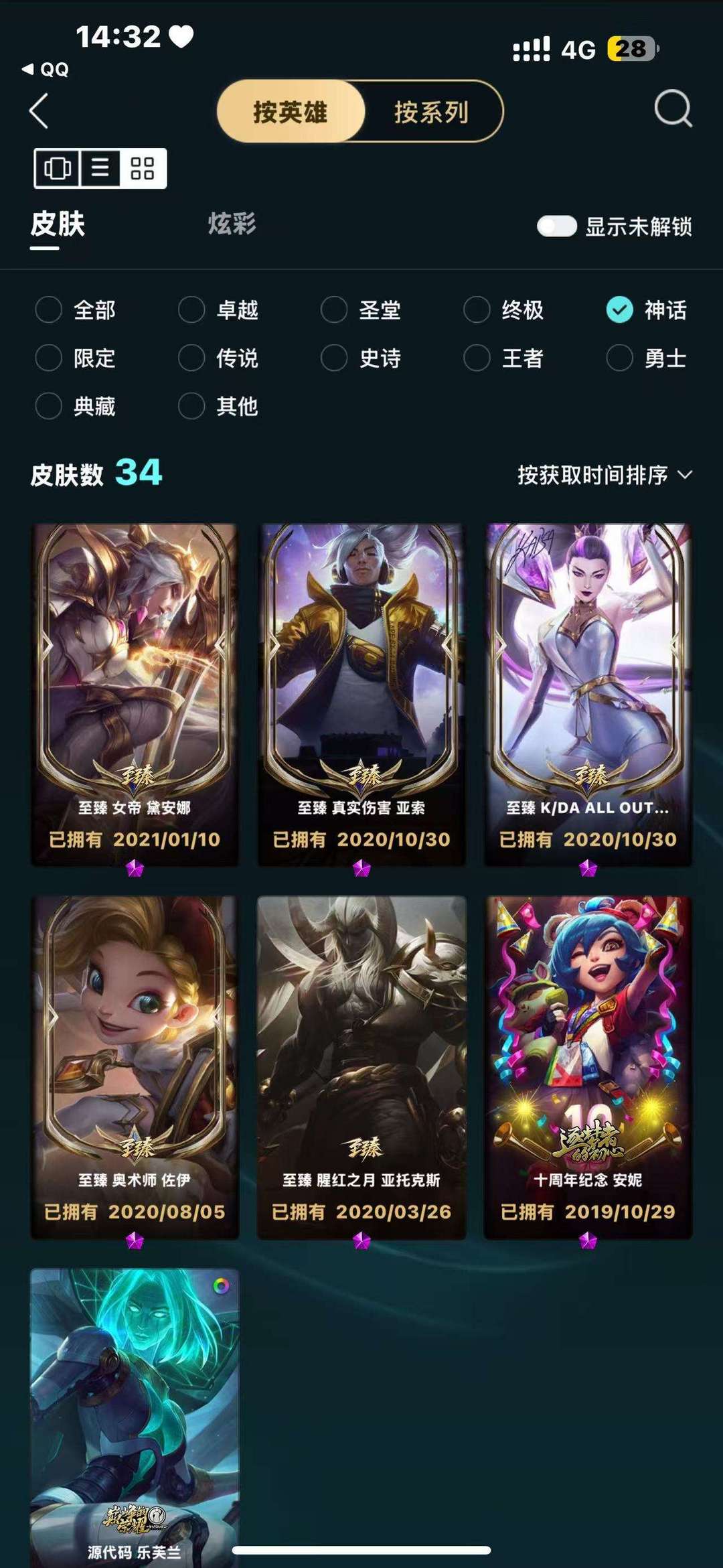 精品574皮神话34限定74皮终极3皮传说69皮有大元素使,云顶有幻龙亚索,棋盘有周年庆,光辉