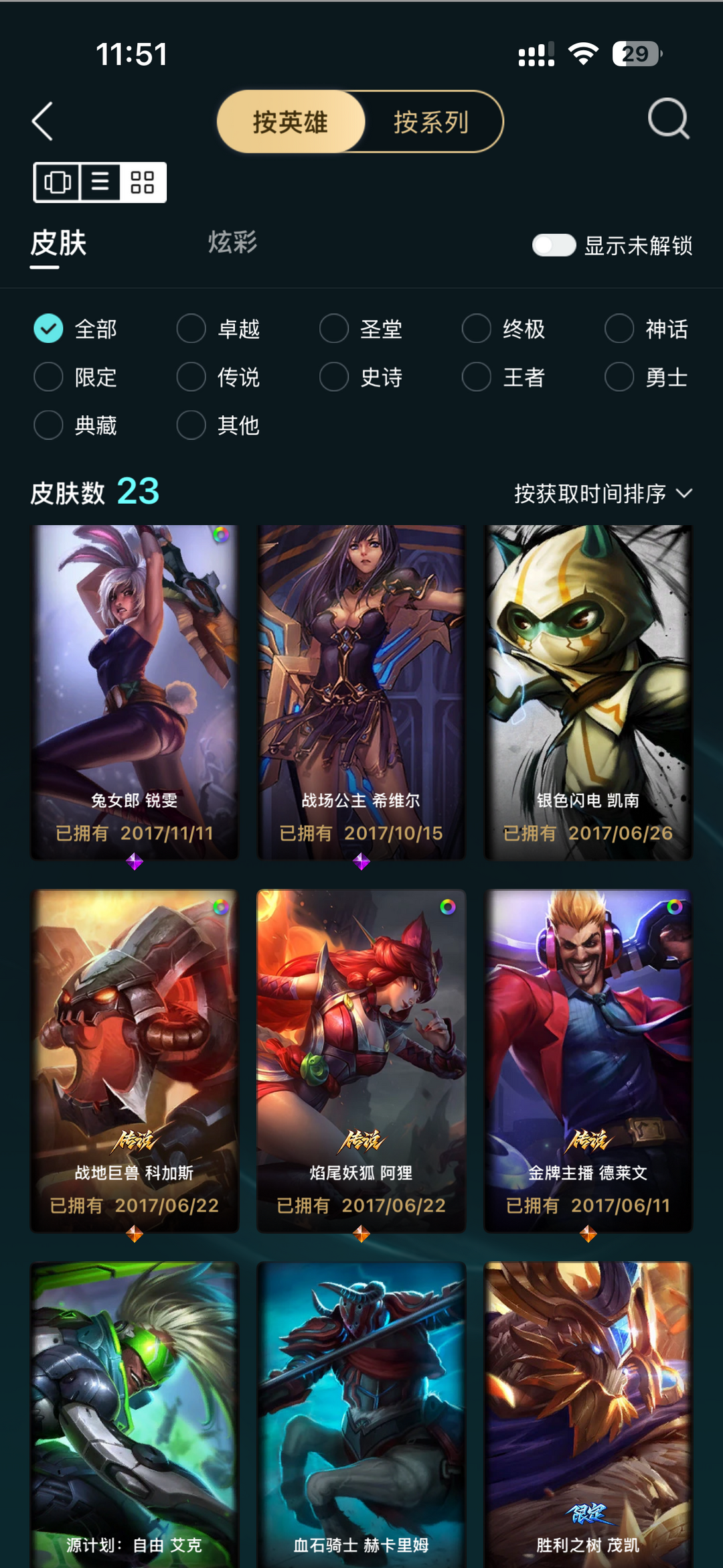 装备描述:98英雄全位置覆盖,23皮肤含传说限定,开黑上分必备!详情请看账号图片