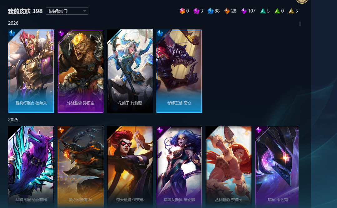 联盟二区397p可排位28传说皮107史诗皮墨之影剑圣花仙子莉莉娅皮肤多多