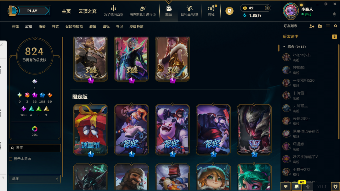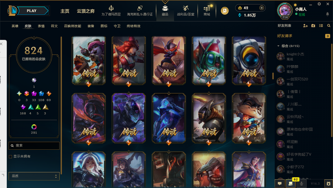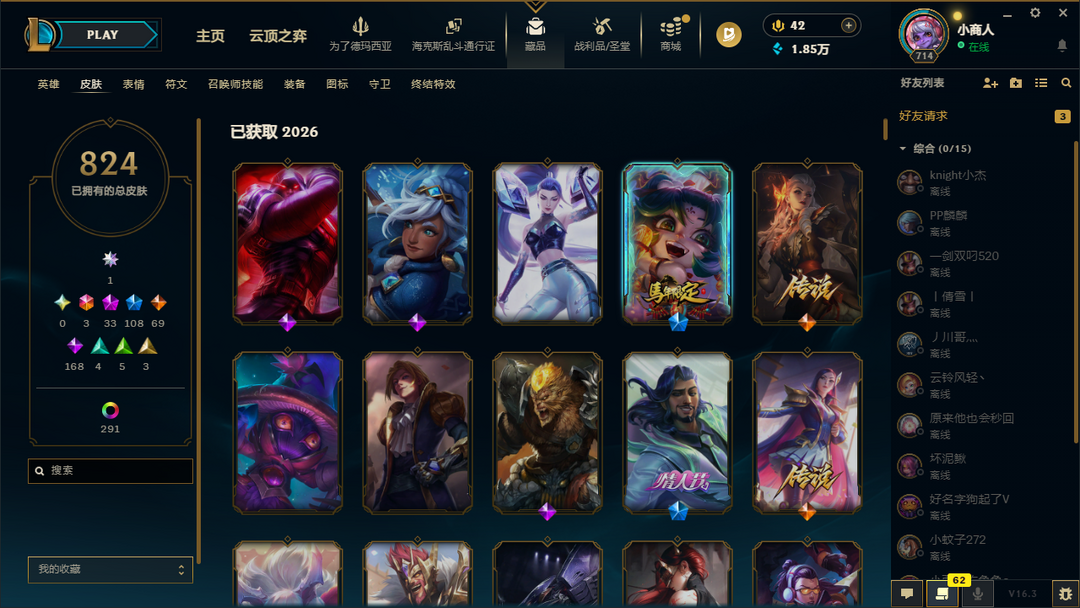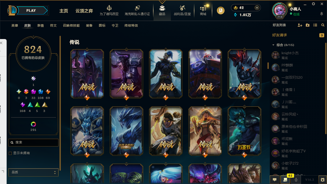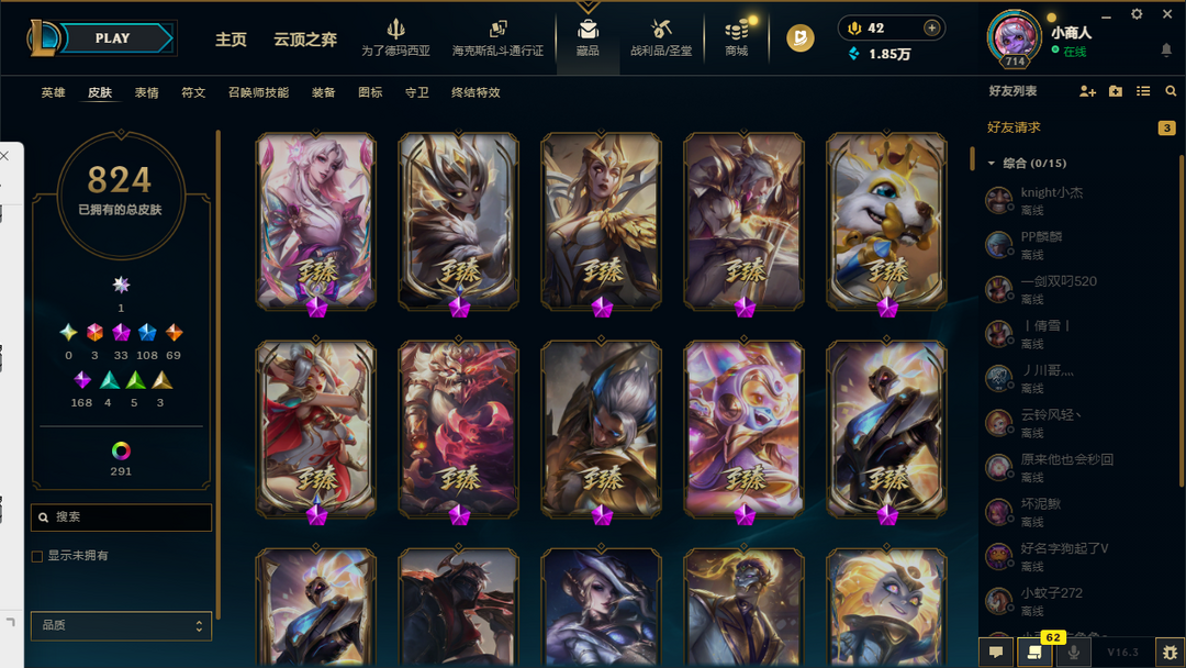 6000p殿堂级皮肤❤️满英雄❤️各种至臻海克斯皮肤❤️各种T1T2T3皮肤