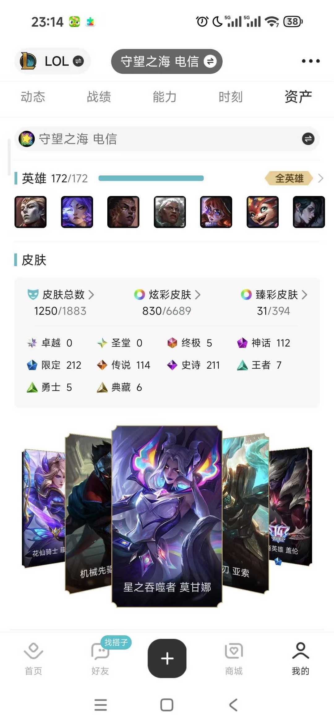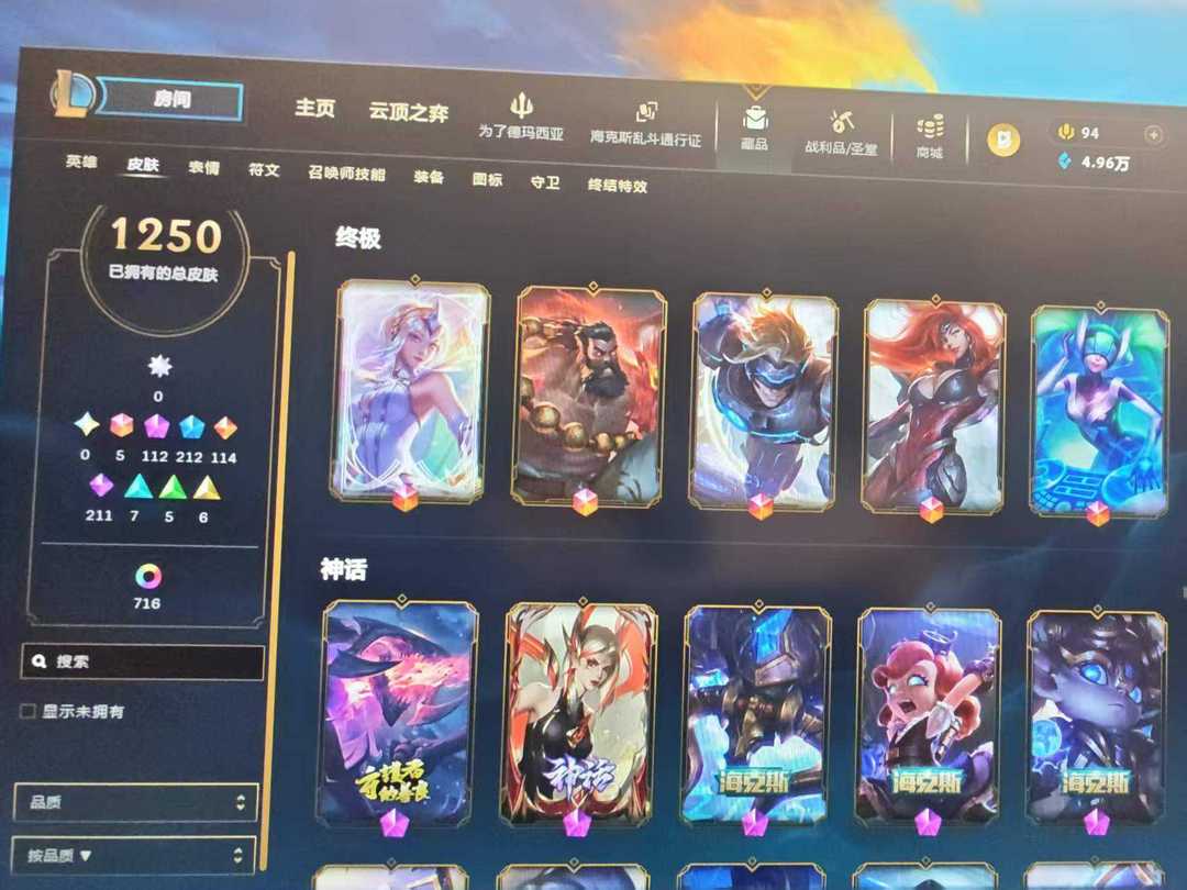 (可排位)真实皮1250炫彩830臻彩31终极5神话 112 限定 213 小小英雄400棋盘30
