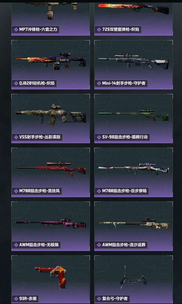 皮肤号 凌霄戍卫❤️蚀金玫瑰❤️电锯❤️水墨麦晓雯❤️露娜金皮❤️深蓝不破誓约❤️乌鲁鲁金皮 各类枪械
