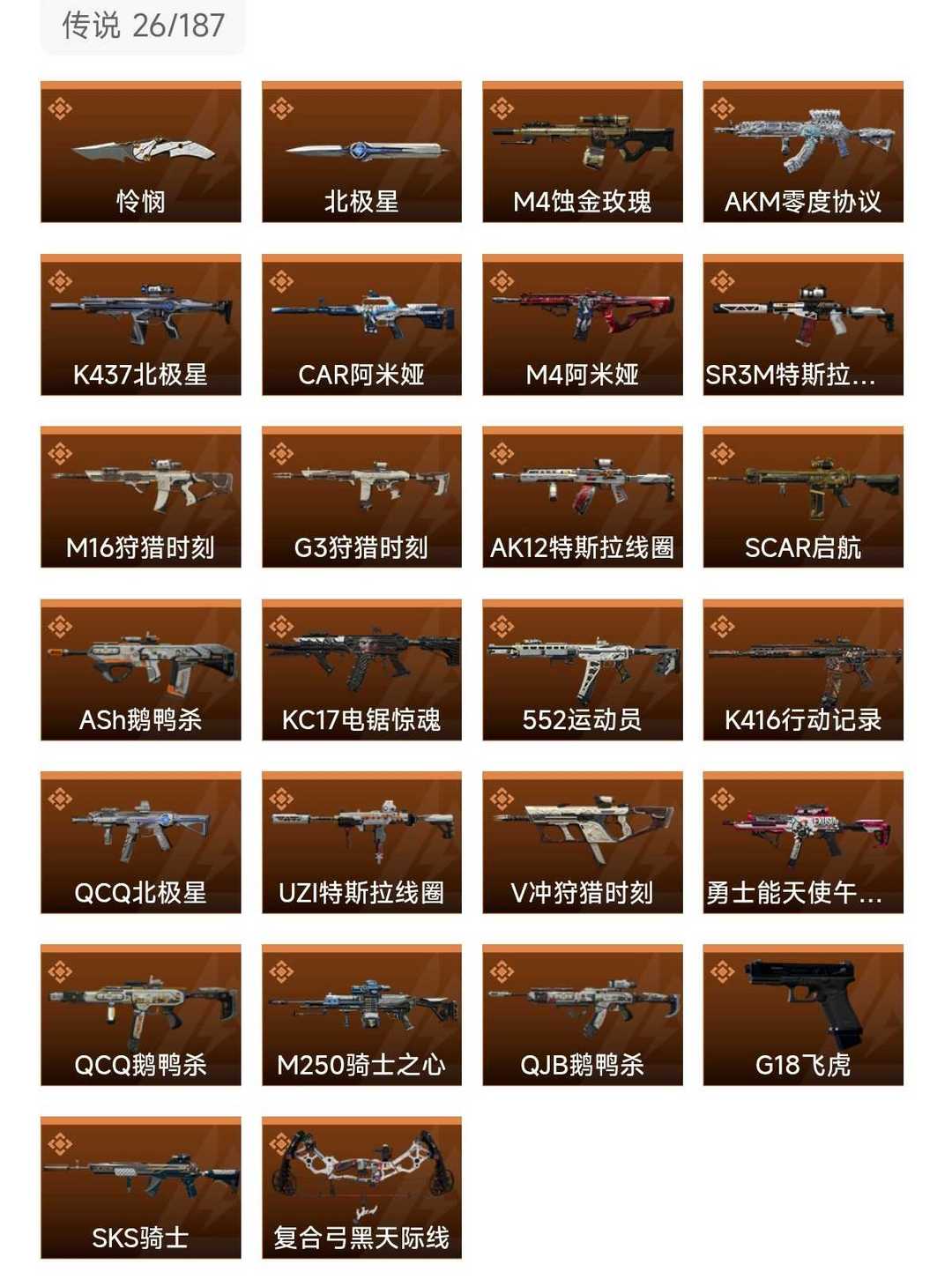 皮肤号 蚀金玫瑰吴彦祖怜悯之刃,北极星,26款传说枪皮