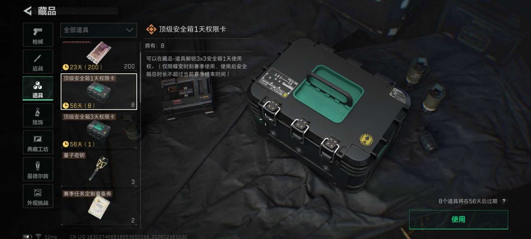 装备描述:仓库物资钥匙装备随便用,藏品箱不动,藏品有保险箱体验卡武器箱用 禁止利用账号进行开挂、使用辅助违规软件诈骗等违规操作。