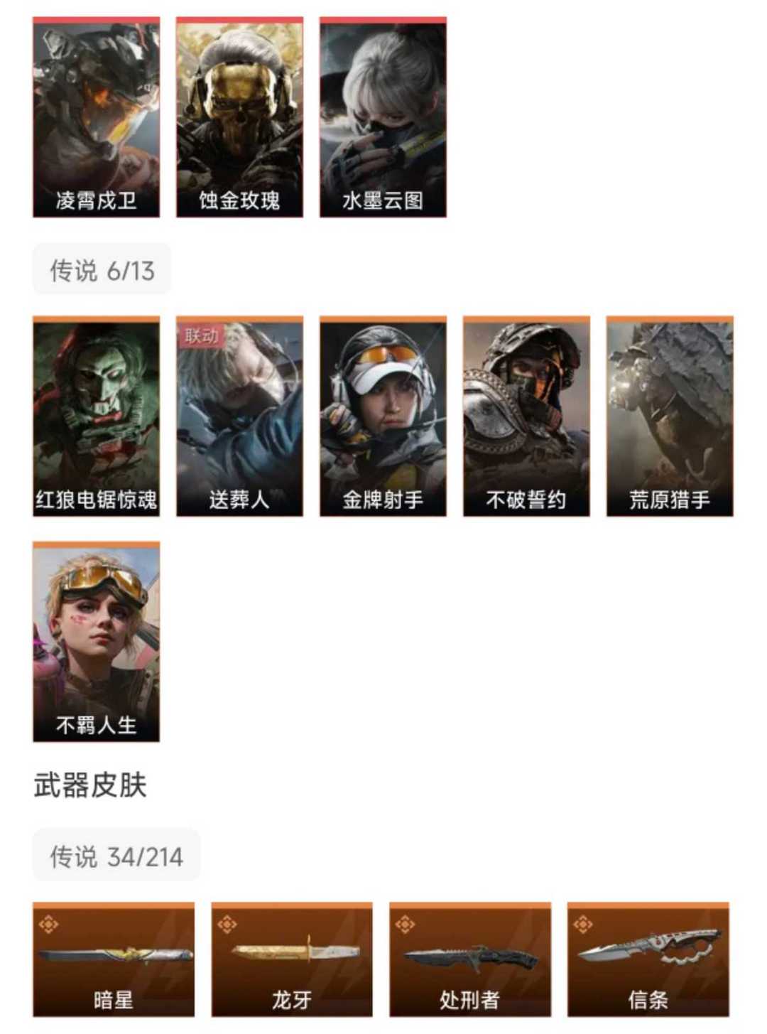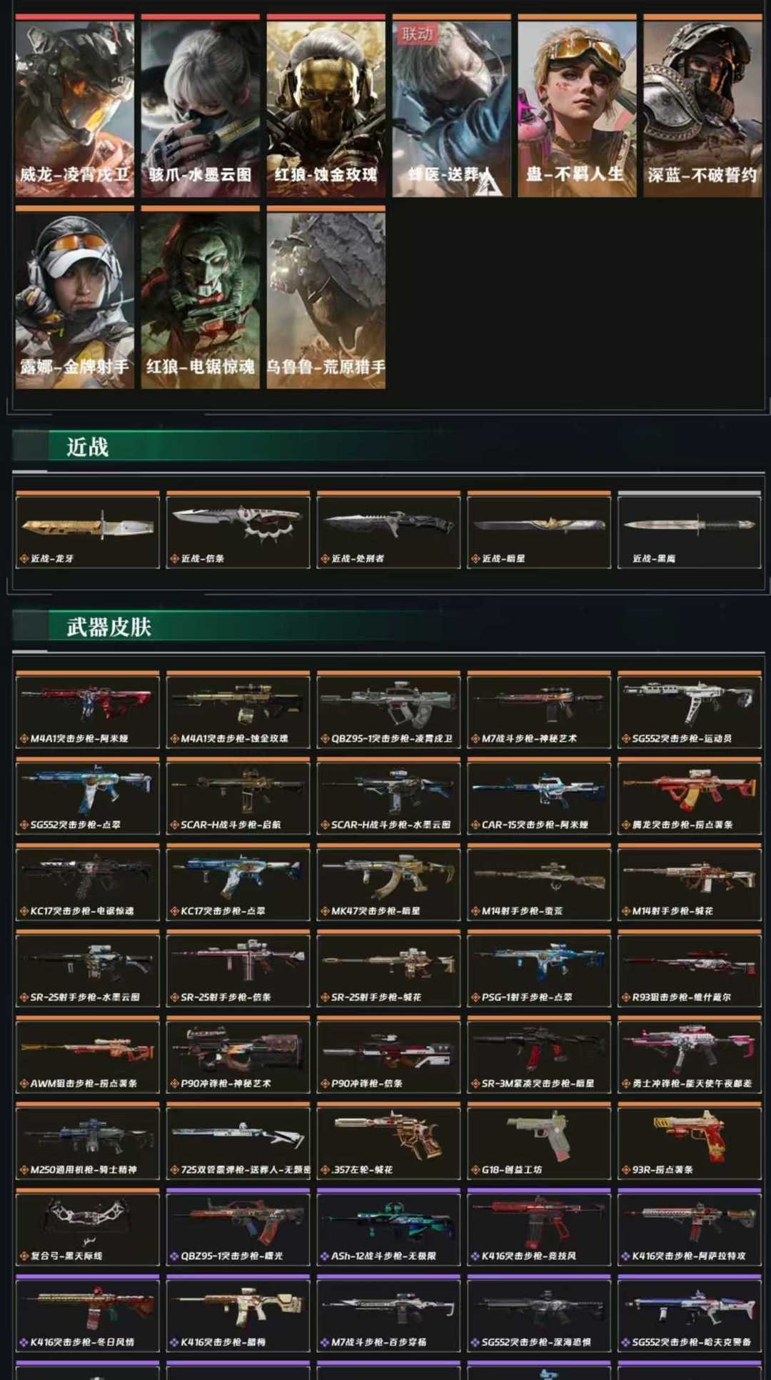 皮肤号 暗星信条凌霄戍卫,蚀金玫瑰,水墨云图,34款传说枪皮