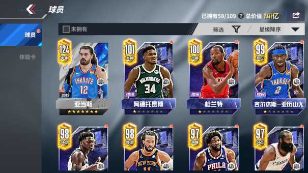 七星满配亚当斯❤字母哥❤杜兰特❤亚历山大