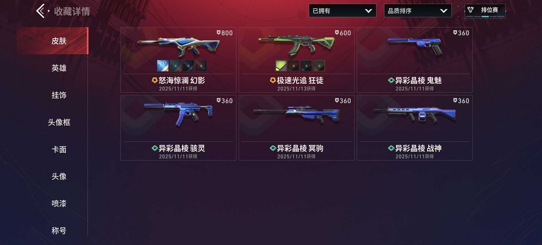 极速光追狂徒满特效✅怒海惊澜幻影满特效✅11级收藏家✅后续持续更新