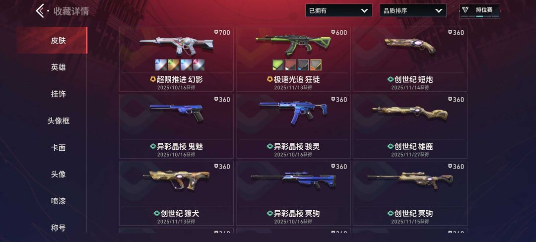 全色炫彩极速光追狂徒满特效✅全色炫彩超限推进幻影满特效✅19级收藏家✅ 收藏持续更新