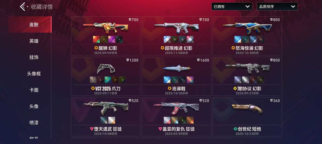 24级收藏家 VCT爪刀 沧澜戟 醒狮 超限推进 怒海惊澜 781协议幻影 堕天遗武 盖亚的复仇