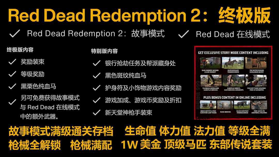 已授权【荒野大镖客2救赎】终极版-大量金条!武器解锁!阿拉战马!抢先体验!