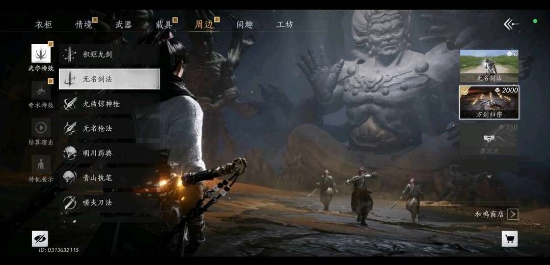 97级,解锁大轻功,所有地图都开了,拥有一套蜀戏春时装,武学特效万剑归宗和龙战玄黄,飞毛腿
