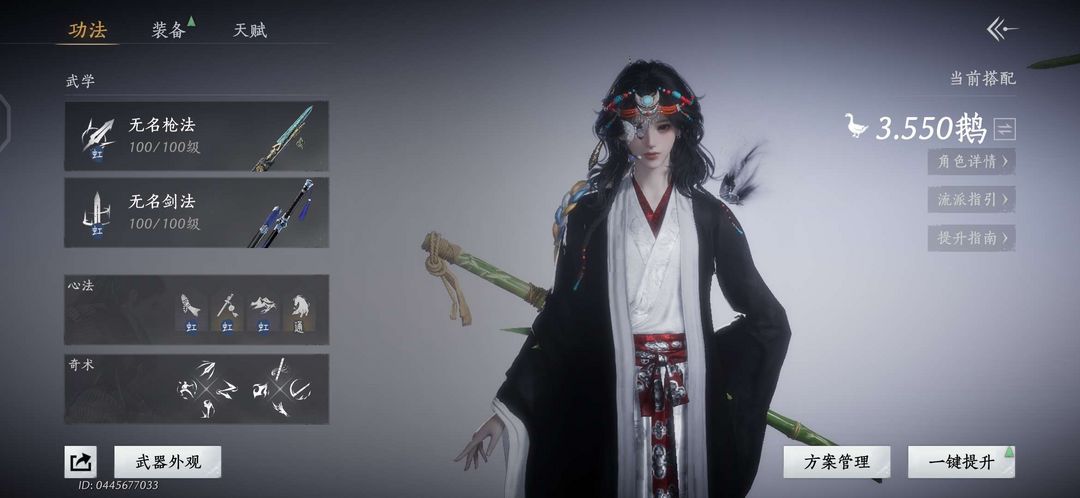 100级,3.5鹅,地图几乎全解锁,无名心法六重,大轻功全解锁,有雪梨儿