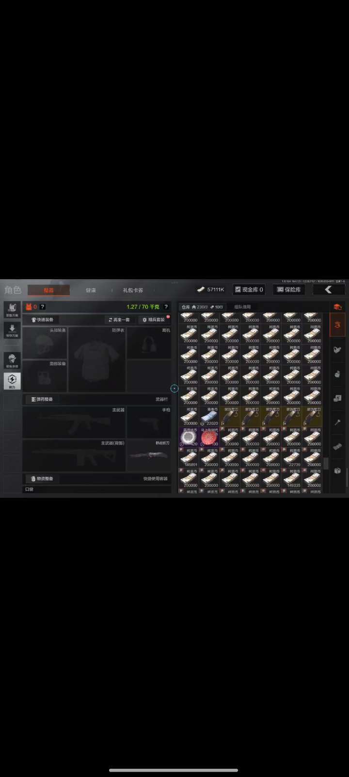 标题:安卓110M仓库 野战折叠刀 无6格无会员 可跑刀可打金