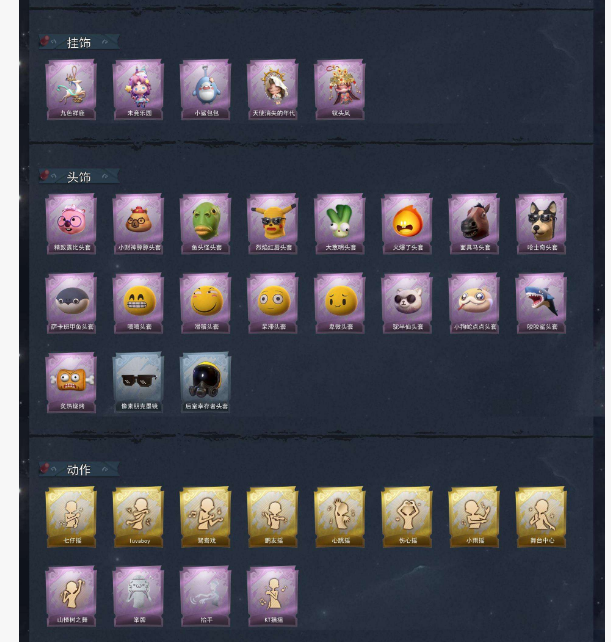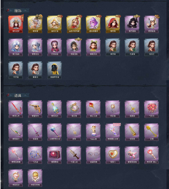 装备描述:巫铃儿-镜生遗梦 【金色皮肤】逍遥-莲华渡、薇薇安-圣光之谕、爱丽丝-血色中的玛丽、小黄-遗失的童话、巫铃儿-镜花辞 【紫色皮肤】薇薇安-黑月挽歌、小黄-霓裳踏雪、零-青云逸歌、巫铃儿-素影瑶光、爱丽丝-丝缕哀歌、逍遥-绣春逍影、小黄-呱呱雨衣 【道具皮肤】桃木剑-凤鸣九天、转轮手枪-新星时代、黄牛能量饮料-青玉抱丹、传送按钮-昆仑镜、铲子-圣心之泪、音响-鸣沙鼓、摸金符-祝祷词、额外的背包-飞花令、刺刀-碧络琅环、桃木剑-永眠曲、专业手电-云端梦想计划、摸金符-紫霄、音响-happy猫、短管猎枪-赞萌露比水枪、葫芦-伏妖塔、铲子-龙鳞、铲子-赞萌波板糖、长鞭-飞天绫、急救包-蔷薇物语、刺刀-小鲨匕首、夜视仪-金丝眼镜、腰包-宝剑八、电击枪-甜蜜泡泡枪、背饰-梵音莲华、背饰-天使的呼唤 【头饰】精致露比头套、小财神豚豚头套、鱼头怪头套、烈焰红唇头套、大葱明头套、火爆了头套、面具马头套、哈士奇头套、萨卡班甲鱼头套、嘻嘻头套、滑稽头套、呆滞头套、卑微头套、驼半仙头套、小狗蛇点点头套、咬咬鲨头套、炙热烧烤、像素朋克墨镜、后室幸存者头套 【挂饰】九色祥鹿、未竟乐园、小鲨包包、天使消失的年代、钗