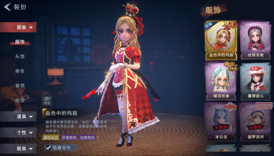 装备描述:绝版皮血色玛丽赤练将军零圣光之逾白泽黑月双耀世十六紫s1绝版皮肤