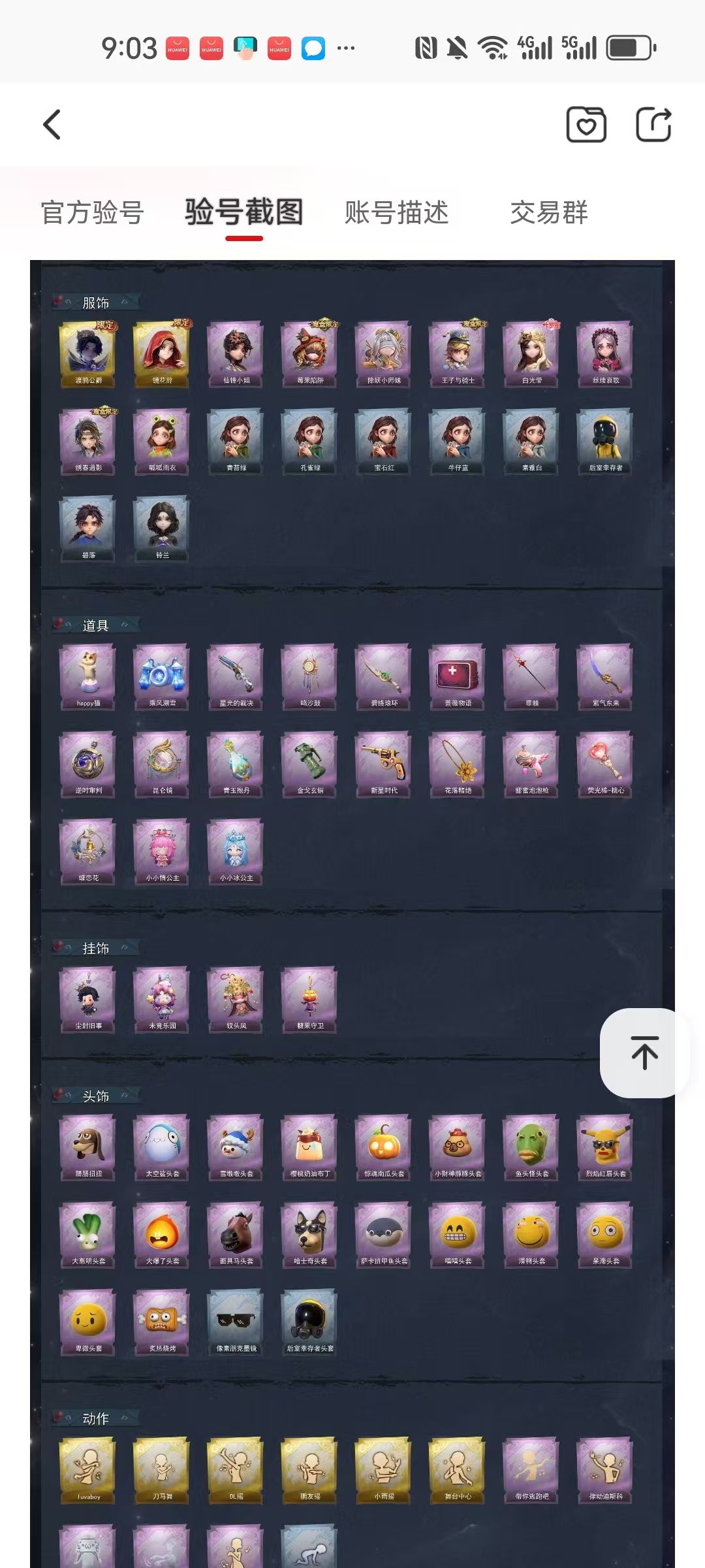 装备描述:【金色皮肤】零-渡鸦公爵、巫铃儿-镜花辞 【紫色皮肤】薇薇安-仙锋小姐、莉莉-莓果陷阱、莉莉-除妖小师妹、阿念-王子与骑士、薇薇安-白光莹、爱丽丝-丝缕哀歌、逍遥-绣春逍影、小黄-呱呱雨衣 【道具皮肤】音响-happy猫、喷气背包-乘风溯雪、短管猎枪-星光的裁决、音响-鸣沙鼓、刺刀-碧络琅环、急救包-蔷薇物语、刺刀-紫气东来、传送按钮-逆时审判、传送按钮-昆仑镜、黄牛能量饮料-青玉抱丹、闪光弹-金戈玄铜、转轮手枪-新星时代、摸金符-花落精绝、电击枪-甜蜜泡泡枪、背饰-蝶恋花 【头饰】腊肠扭扭、太空鲨头套、雪墩墩头套、樱桃奶油布丁、惊魂南瓜头套、小财神豚豚头套、鱼头怪头套、烈焰红唇头套、大葱明头套、火爆了头套、面具马头套、哈士奇头套、萨卡班甲鱼头套、嘻嘻头套、滑稽头套、呆滞头套、卑微头套、炙热烧烤、像素朋克墨镜、后室幸存者头套