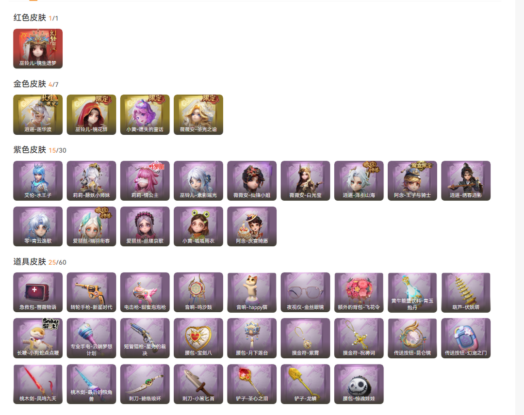 1红4金15紫镜生梦遗莲华渡圣光之逾非遗套白泽白月荧青云零超多皮肤
