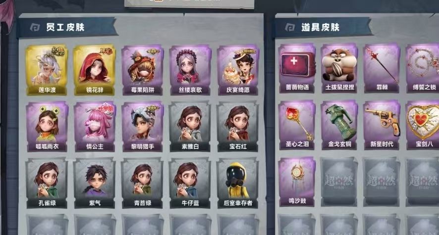 装备描述:皮肤:逍遥-莲华渡,巫铃儿-镜花辞,莉莉-莓果陷阱,爱丽丝-丝缕哀歌,阿念-庆宴绮愿,小黄-呱呱雨衣,莉莉-情公主,艾伦-黎明猎手;道具:急救包-蔷薇物语,急救包-土拨鼠捏捏,长枪-罪棘,长鞭-缚誓之锁,铲子-圣心之泪,闪光弹-金戈玄铜,转轮手枪-新星时代,腰包-宝剑八,音响-鸣沙鼓;美妆:美妆-暗夜小恶魔;