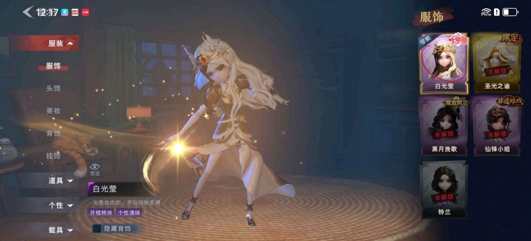 装备描述:【紫色皮肤】零-搬开山、零-赤炼将军、薇薇安-白光莹、逍遥-泽引山海、爱丽丝-丝缕哀歌 【道具皮肤】转轮手枪-新星时代、急救包-蔷薇物语、铲子-焰骨 【头饰】鱼头怪头套、烈焰红唇头套、面具马头套、哈士奇头套、萨卡班甲鱼头套、嘻嘻头套、滑稽头套、呆滞头套、卑微头套、鳄霸天头套、驼半仙头套、咬咬鲨头套、炙热烧烤、粽小宝头套、像素朋克墨镜、哞哞牛头套、后室幸存者头套 【挂饰】小小玛丽、天使消失的年代 【动作】心跳摇、小雨摇、舞台中心、星奇摇、敲门舞、痞帅进行曲、举牌、抬手、旋转舞