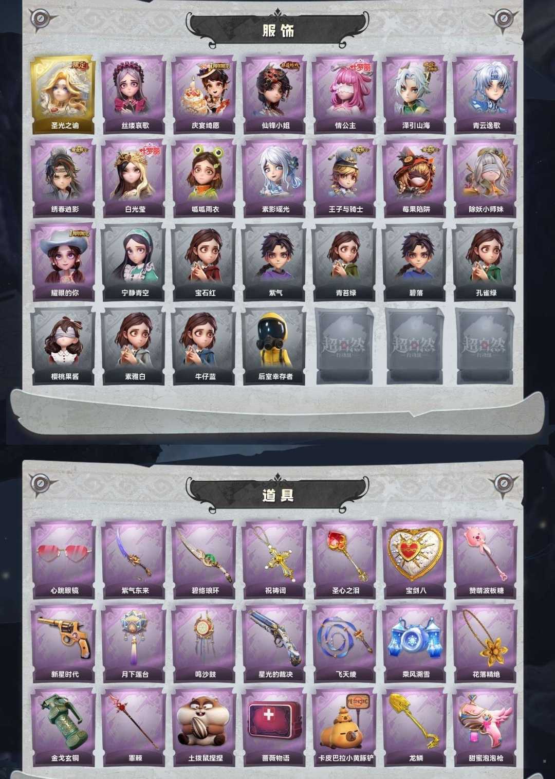 1金♉14紫♉圣光之谕♋仙锋小姐♋情公主⛎泽引山海⛎绣春逍影♑白光莹♑王子与骑士♉莓果陷阱♉素影瑶光